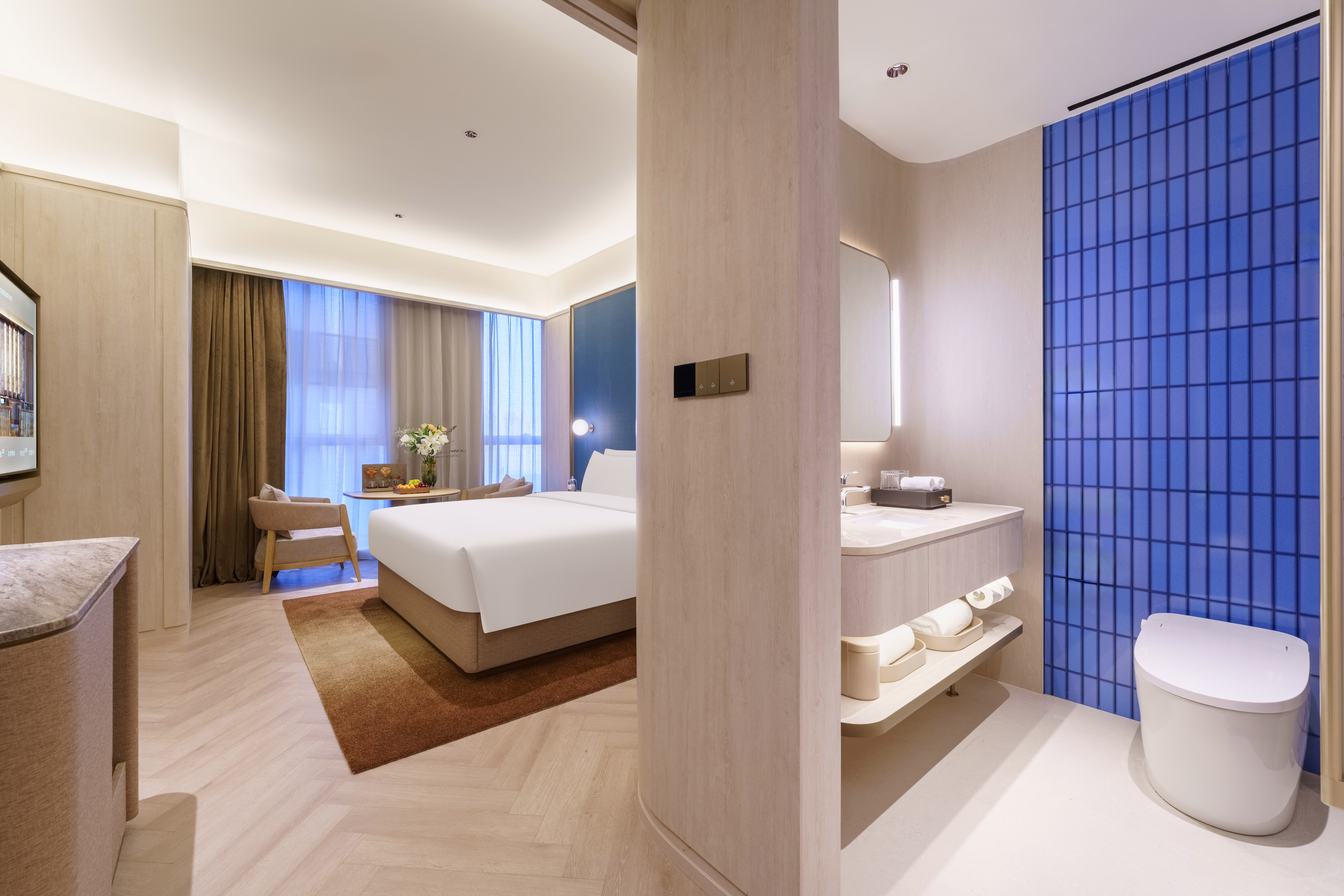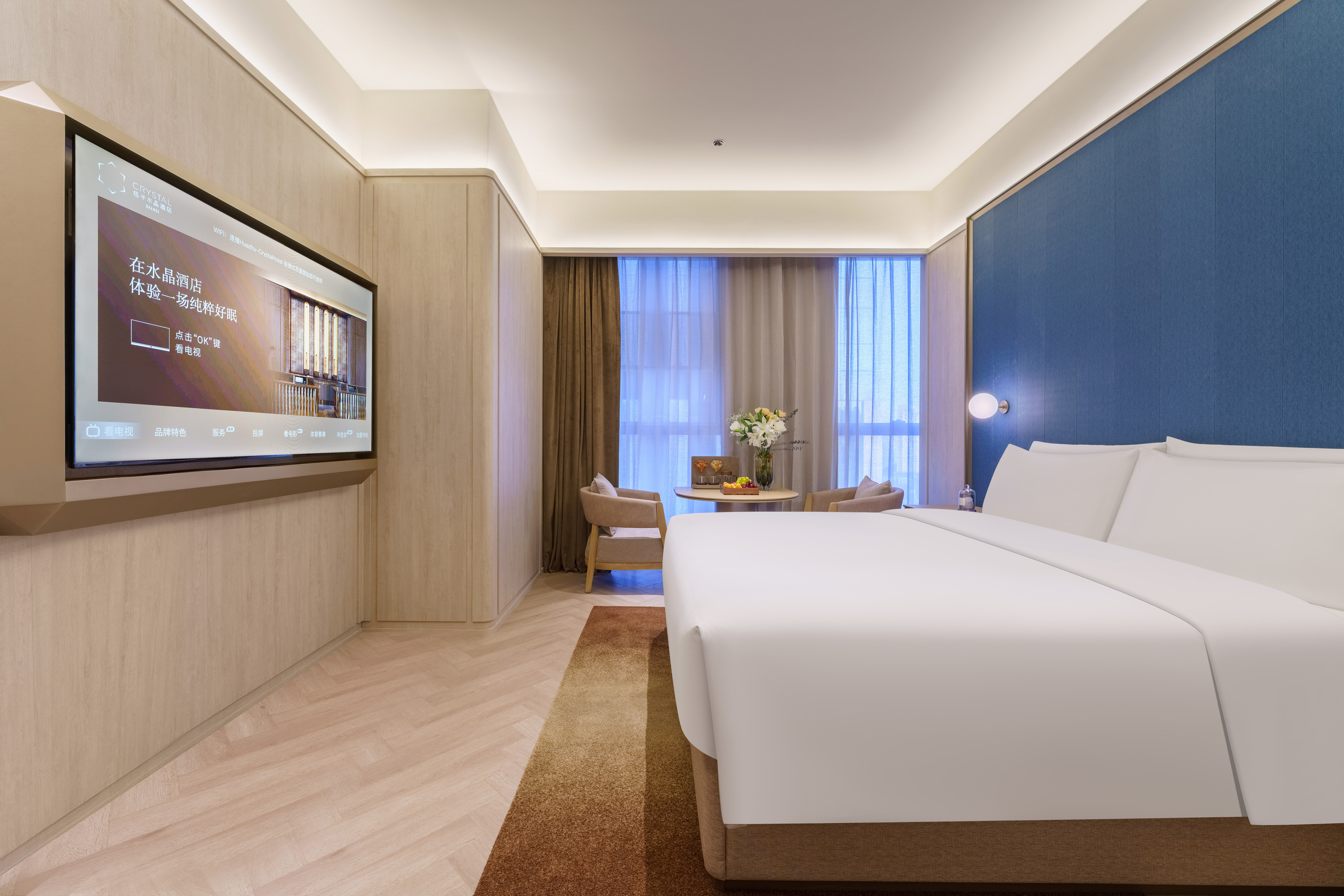 大床房(高空城景+投屏电视+亲肤浴袍+小冰箱)