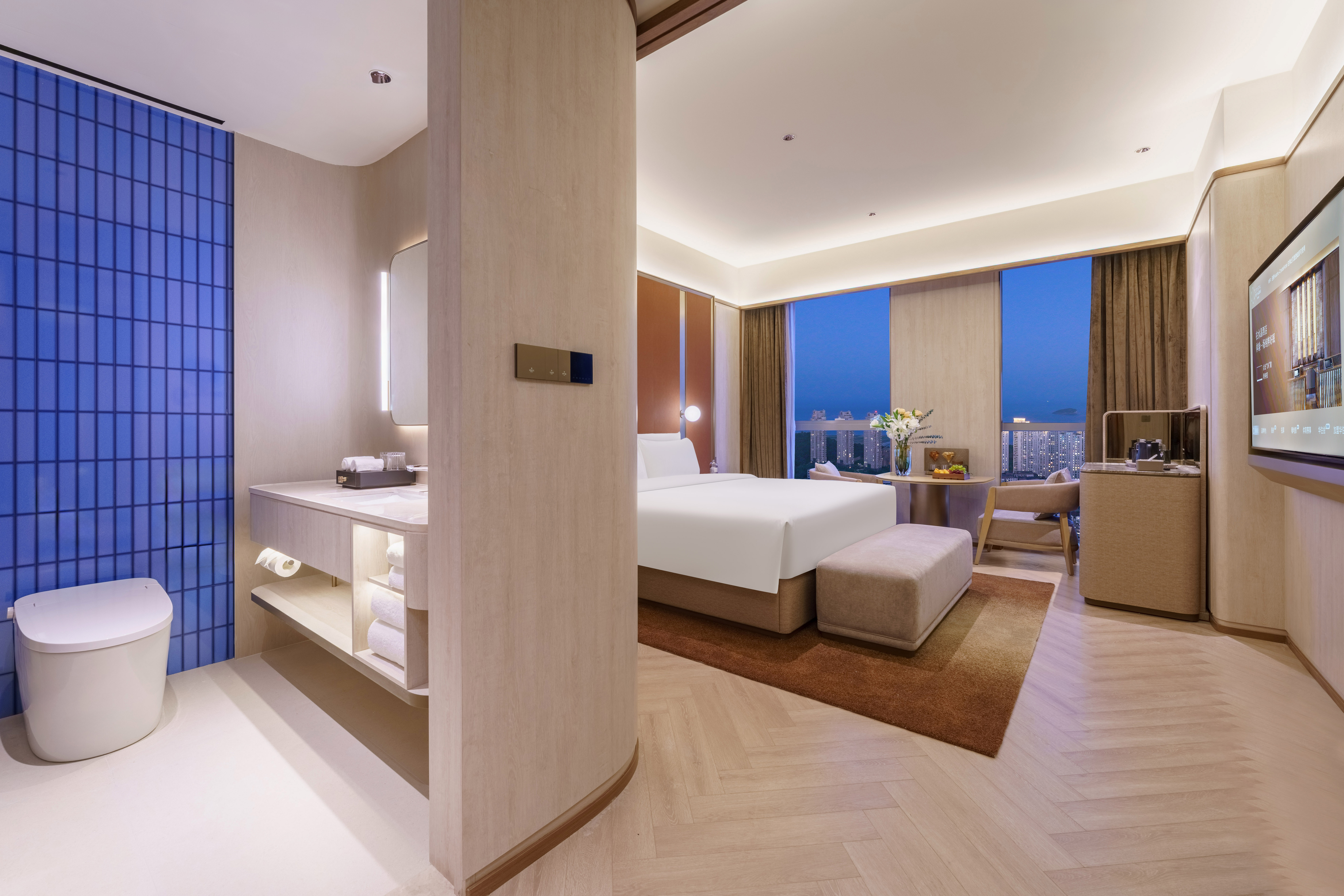 高级大床房(高空城景+投屏电视+亲肤浴袍+小冰箱)