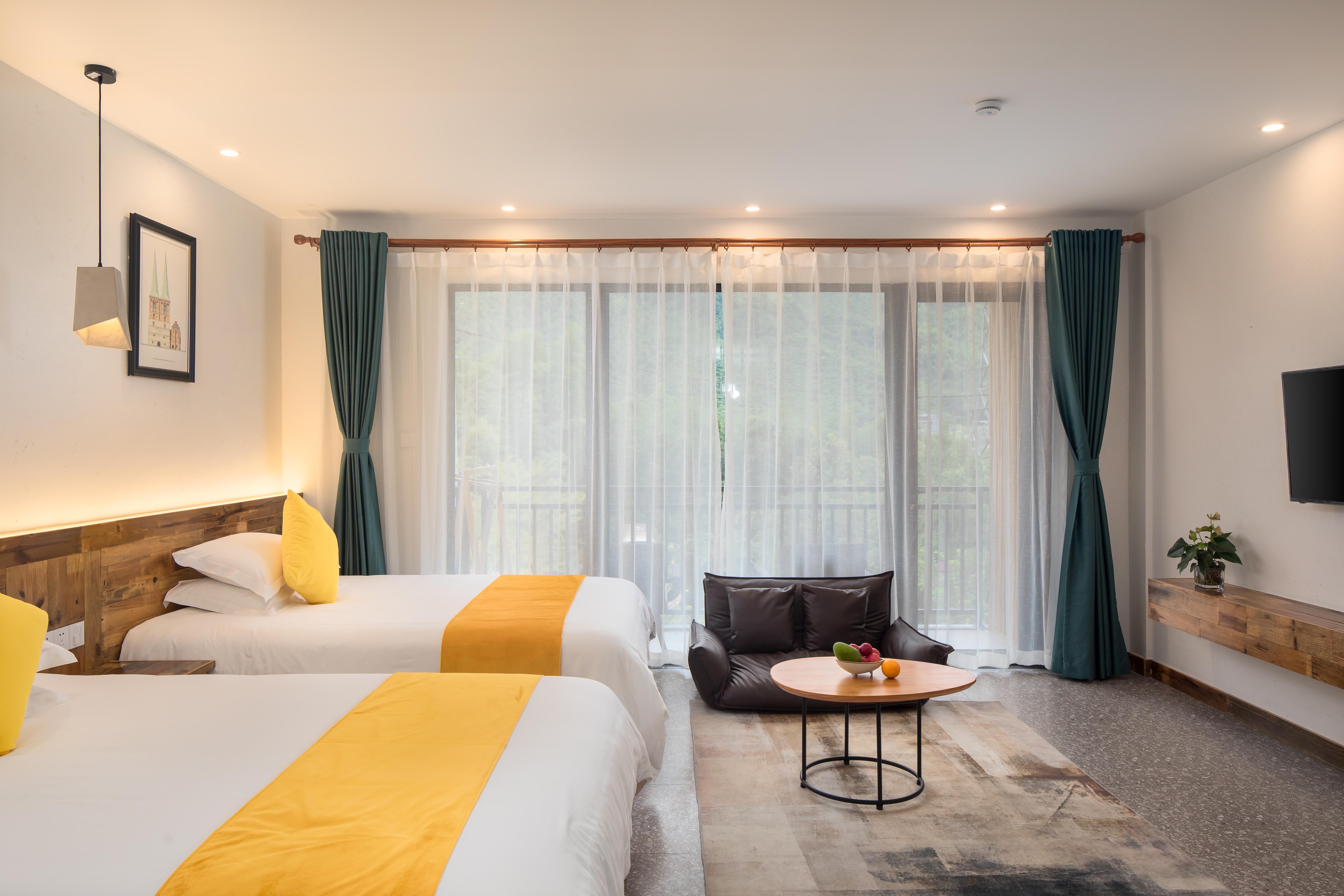 No.2 Mianzhu Homey Twin Room (Balcony Mountain View + Tub)