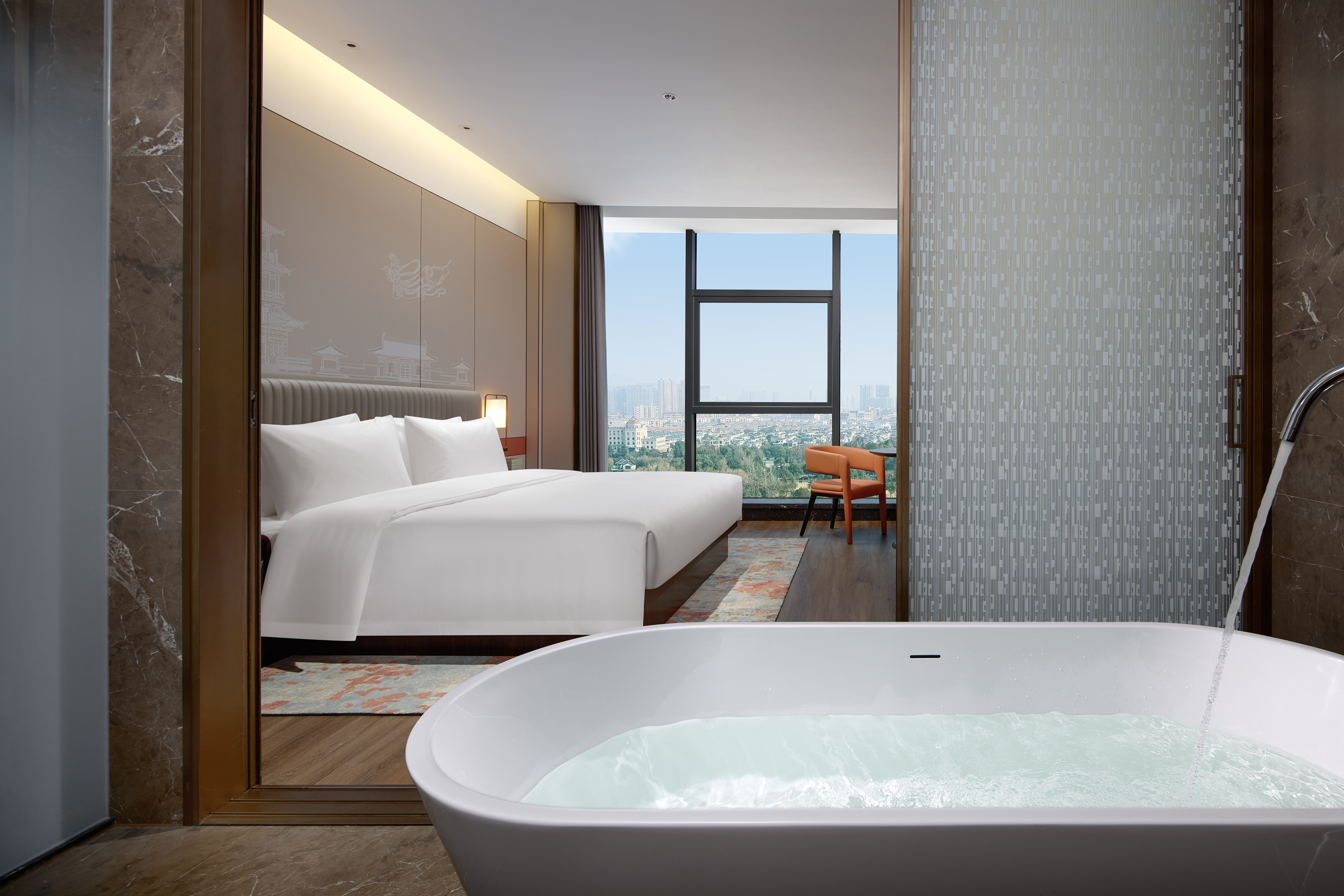 名成商务大床房(唐风国潮+临江江景+商务办公)
