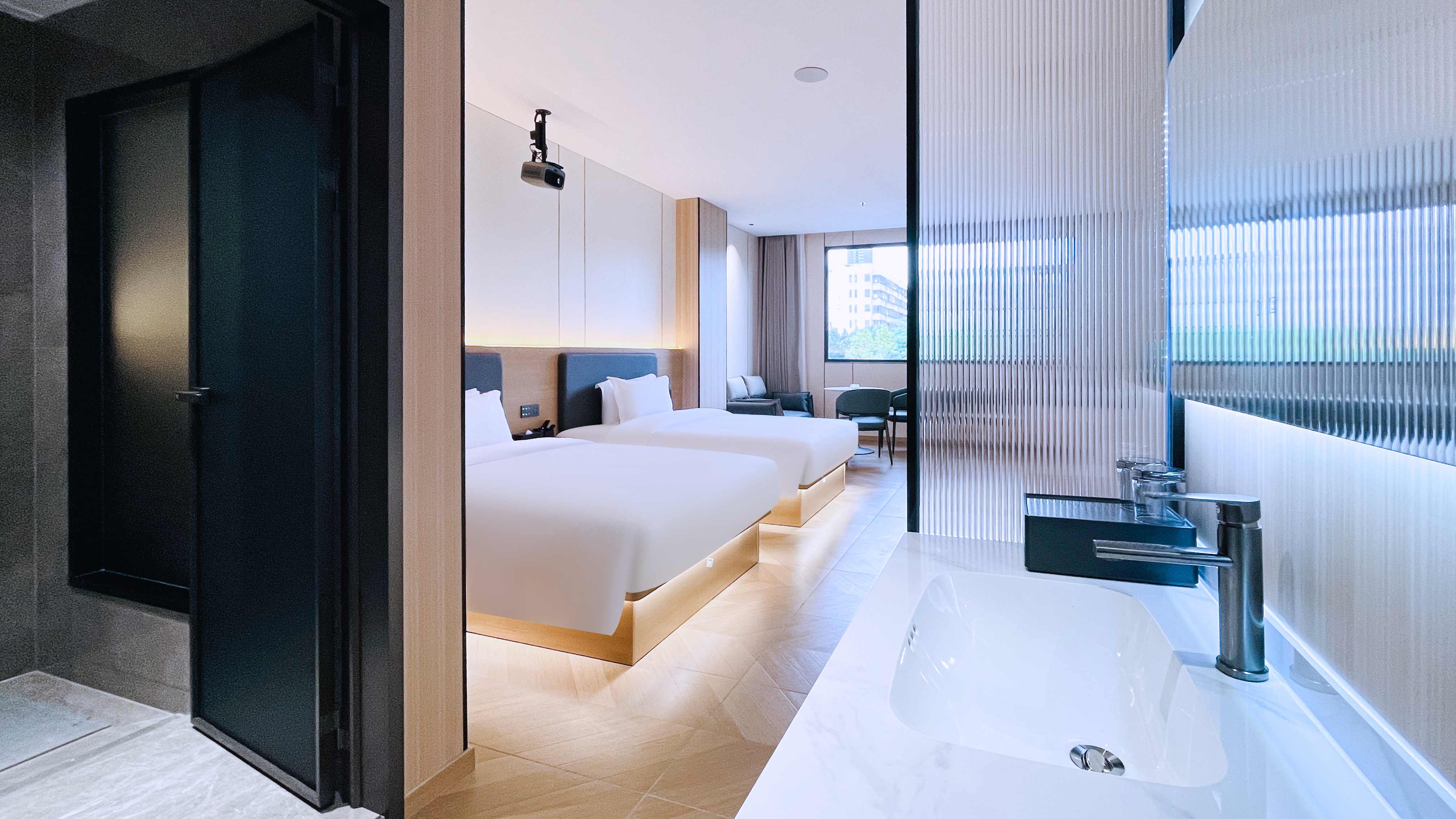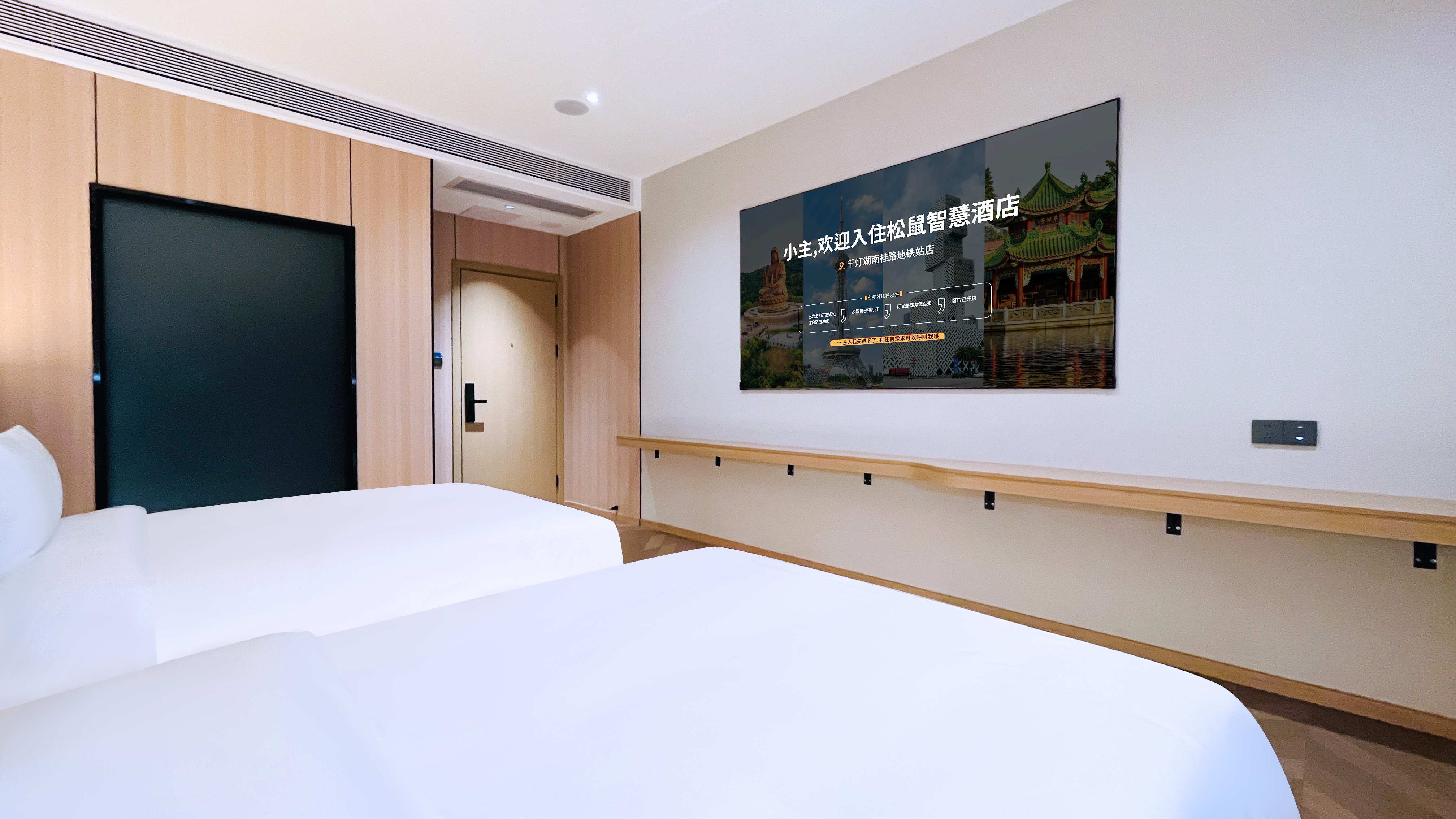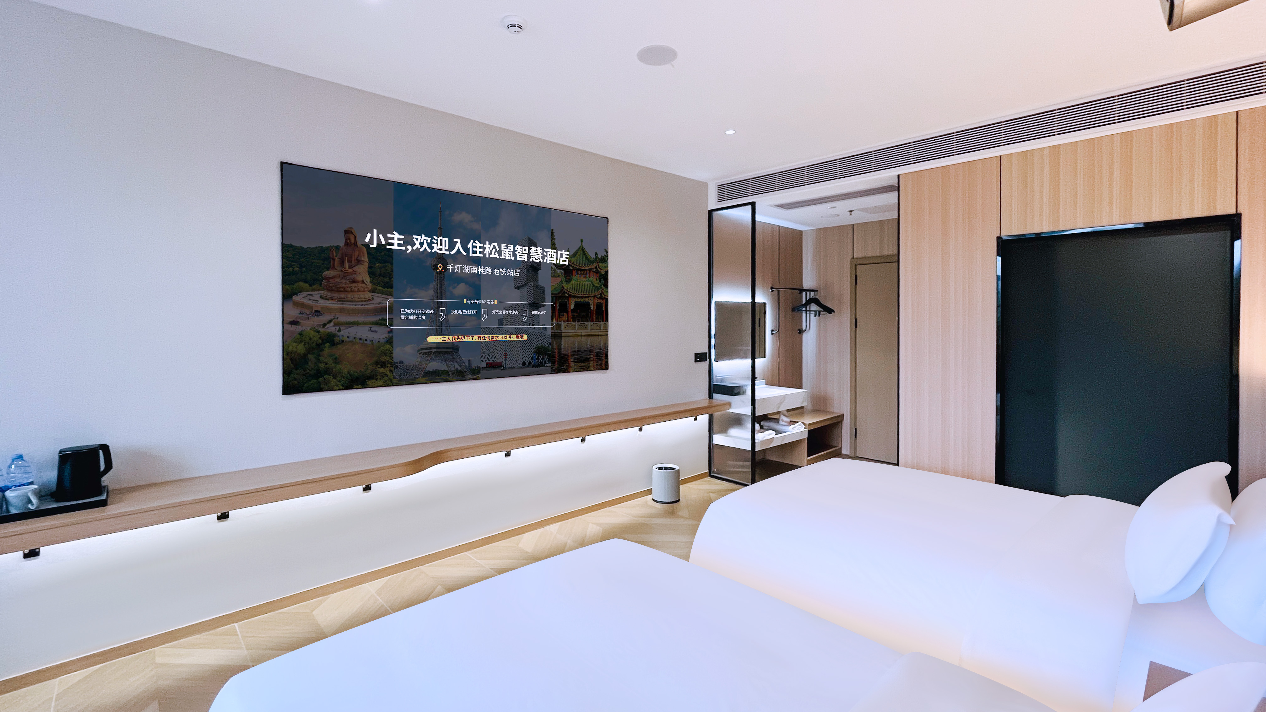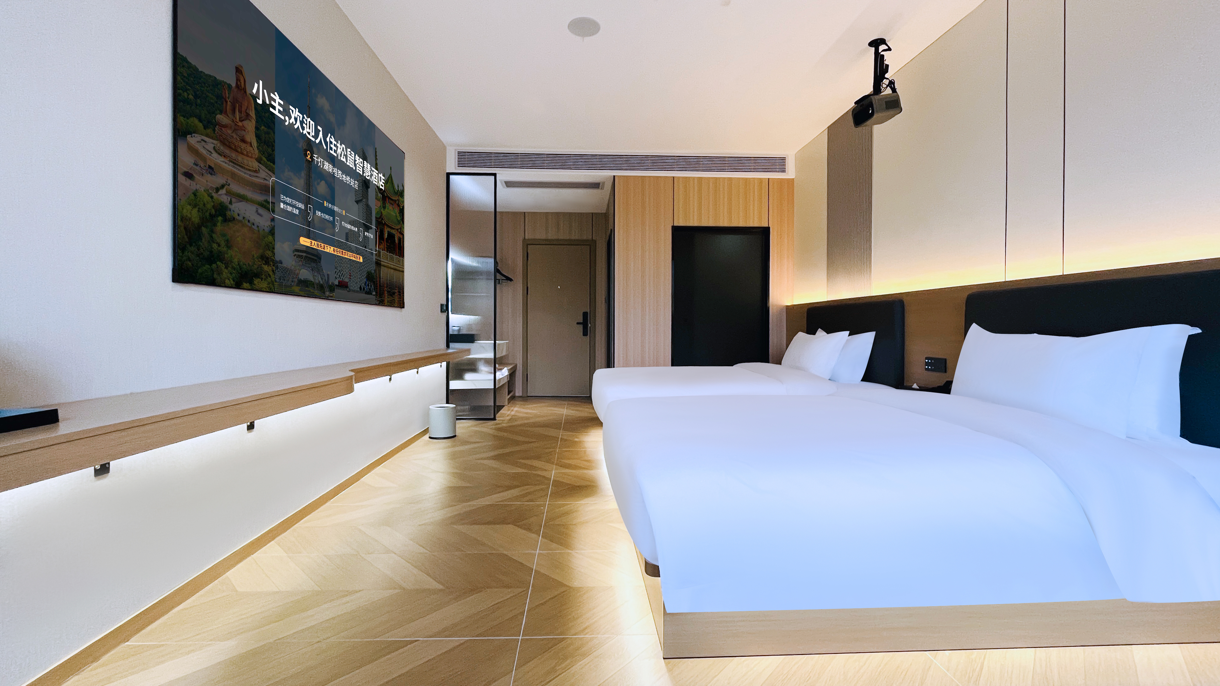 智慧高级巨幕影视双床房-智能客控-零压睡眠-智能马桶