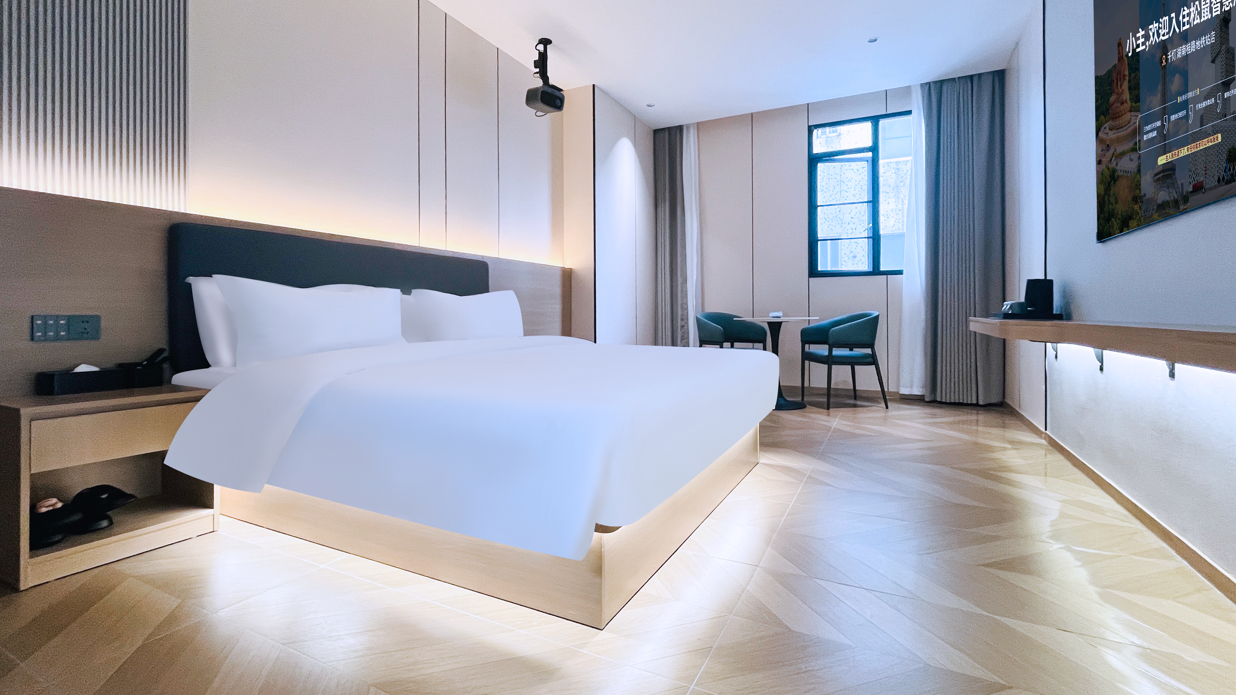 智享豪华巨幕影视大床房-智能控制-办公桌-零压睡眠
