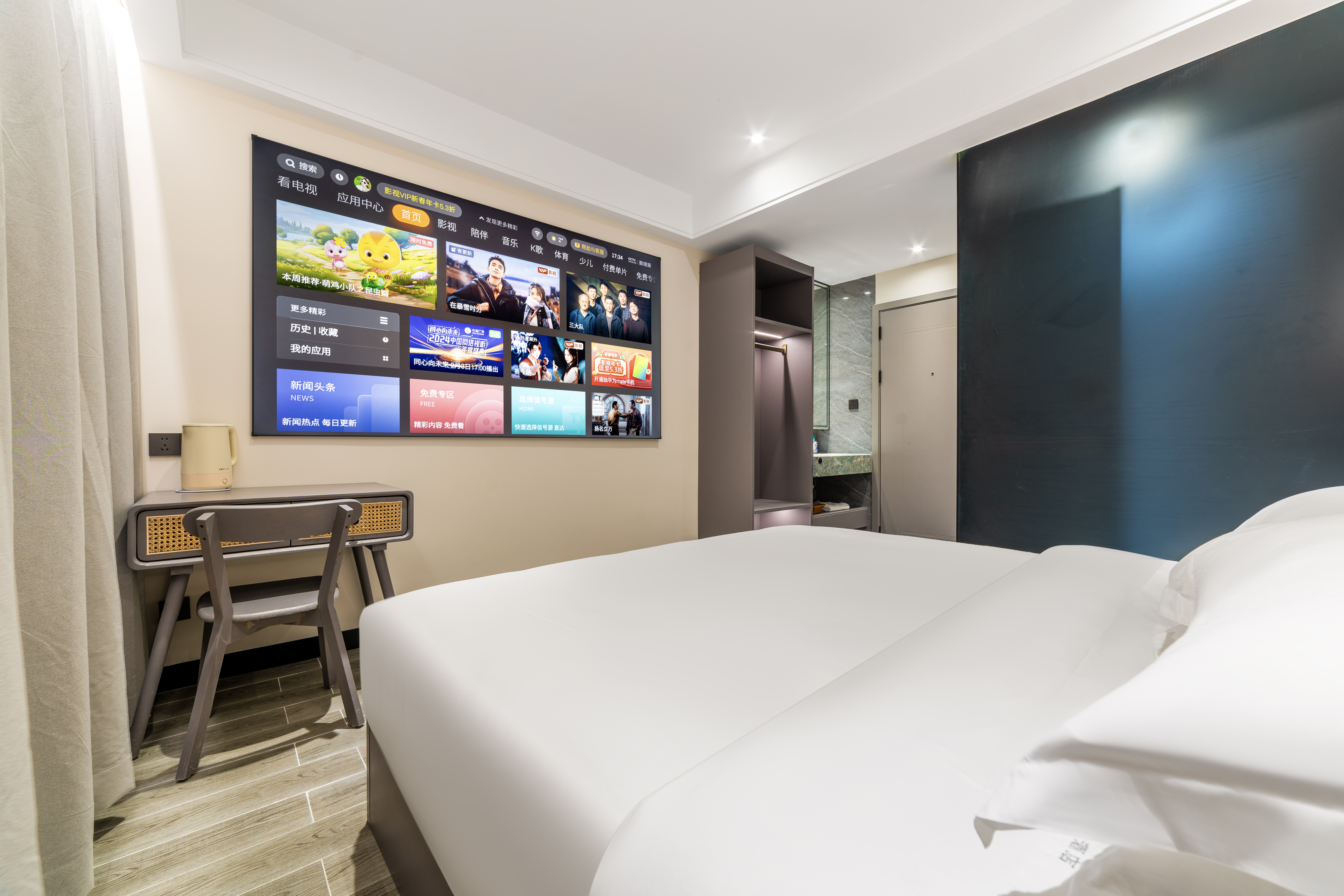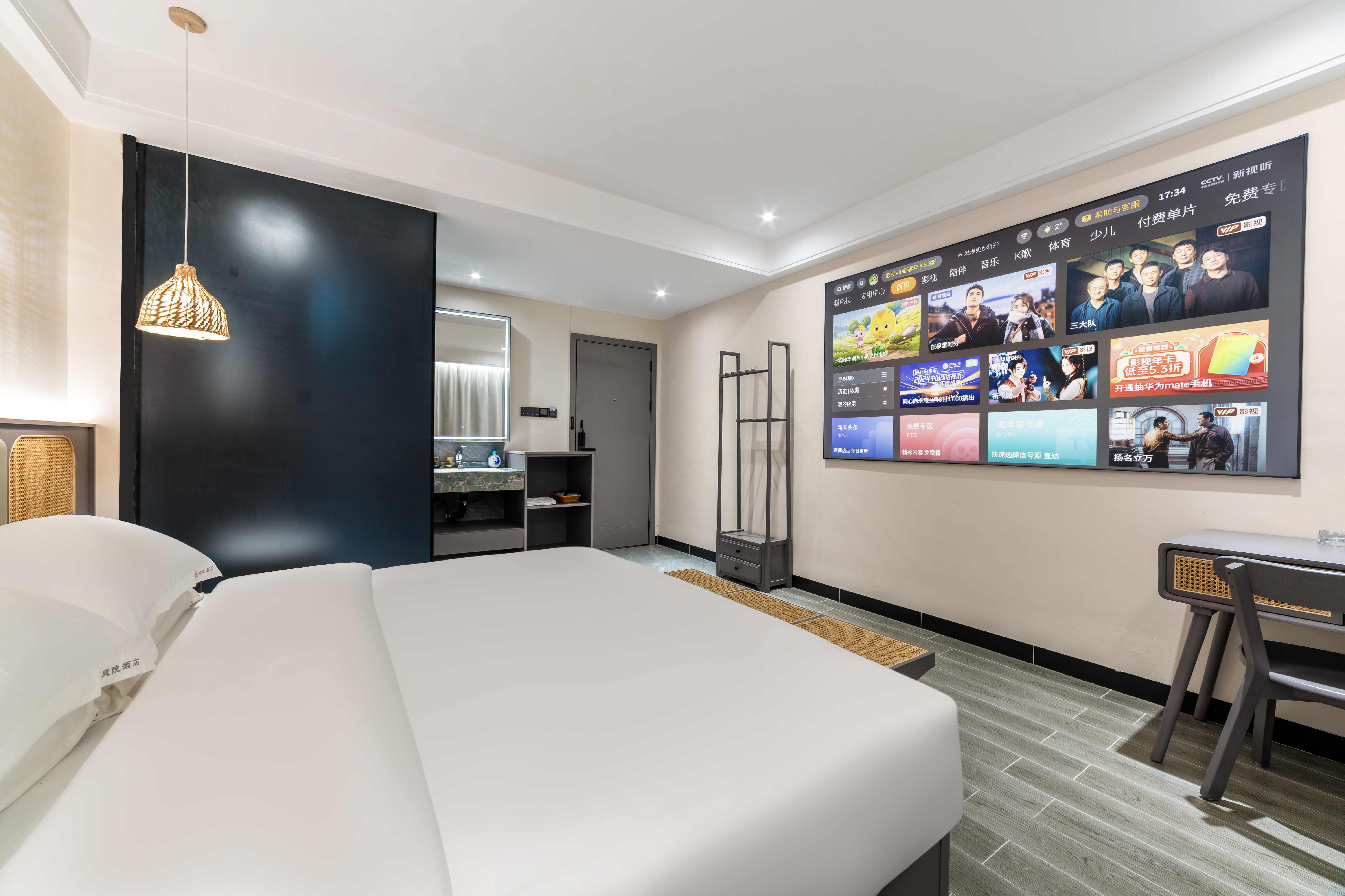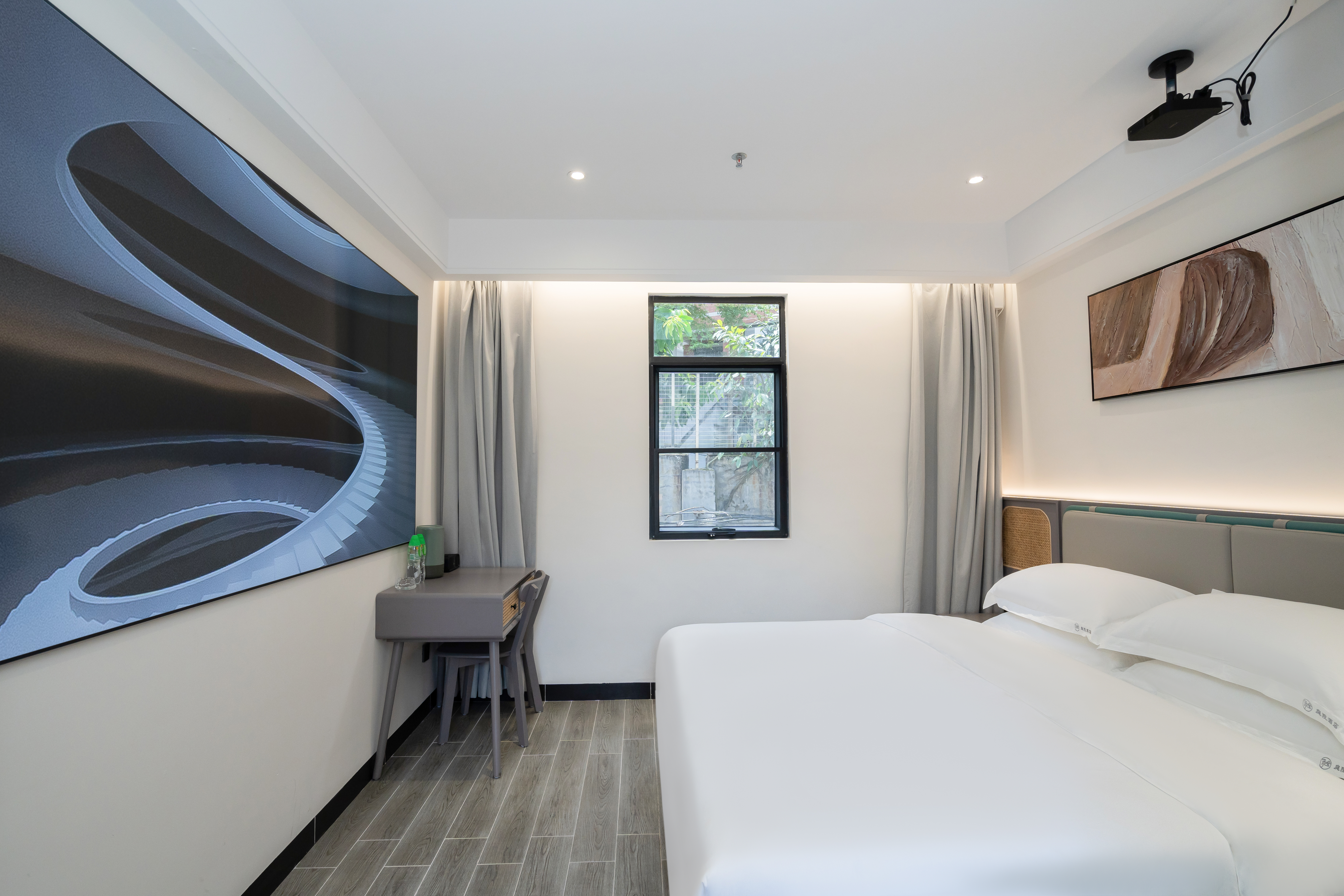 侘寂投影大床房(百寸高清幕布+全屋声控+负离子吹风机+智能马桶)