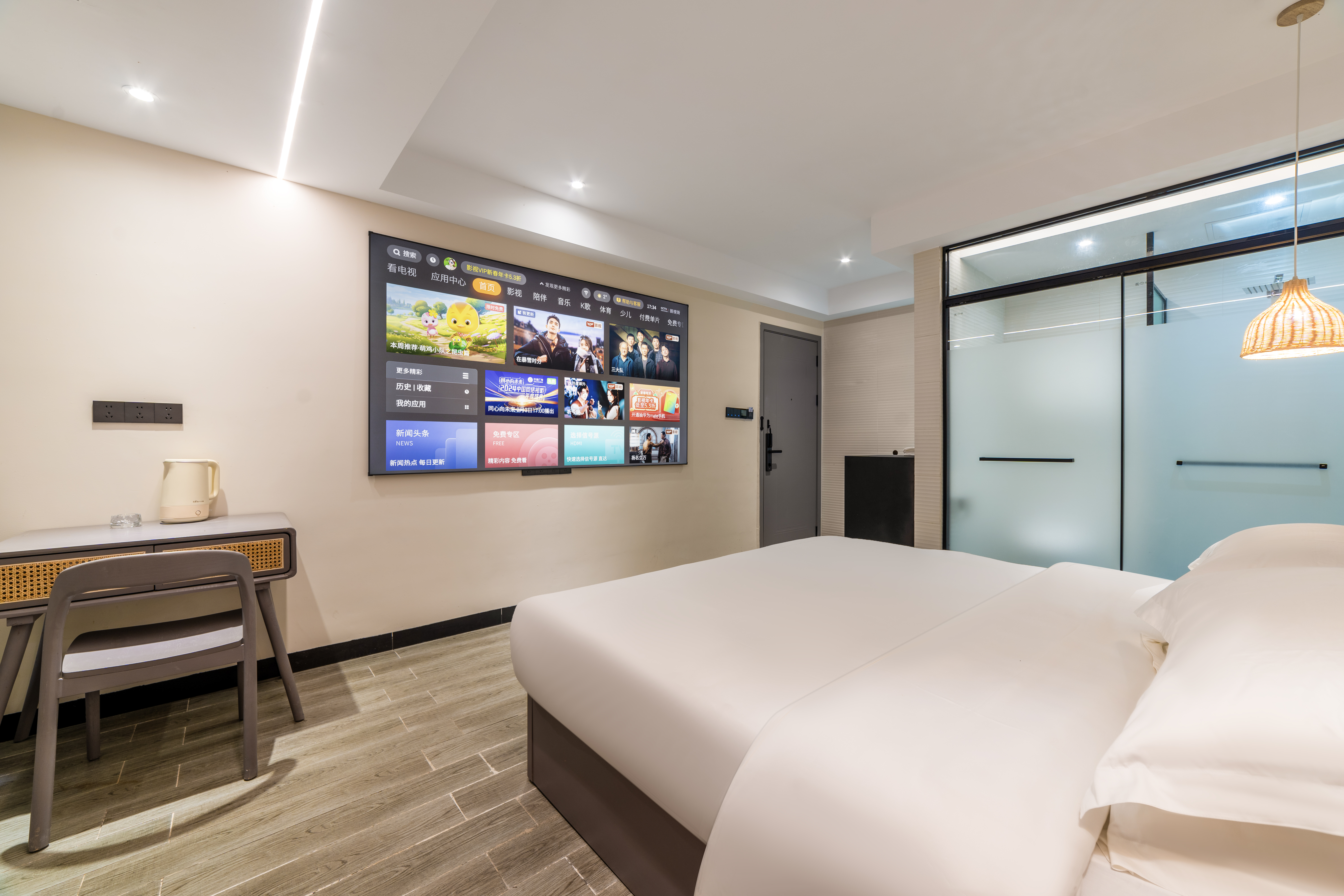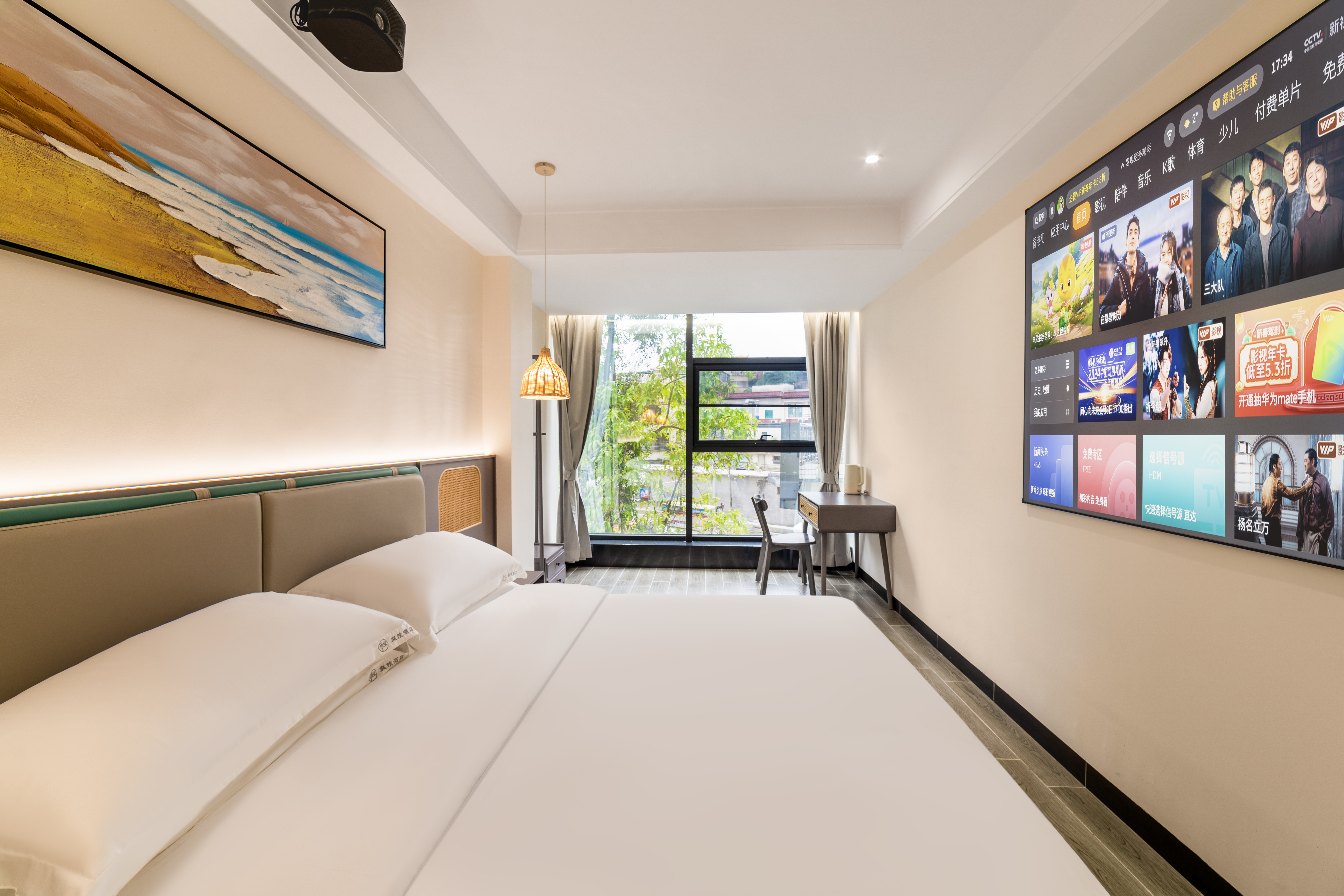 禅静投影大床房(全屋声控+百寸高清幕布+天猫精灵+3D 0压床垫)