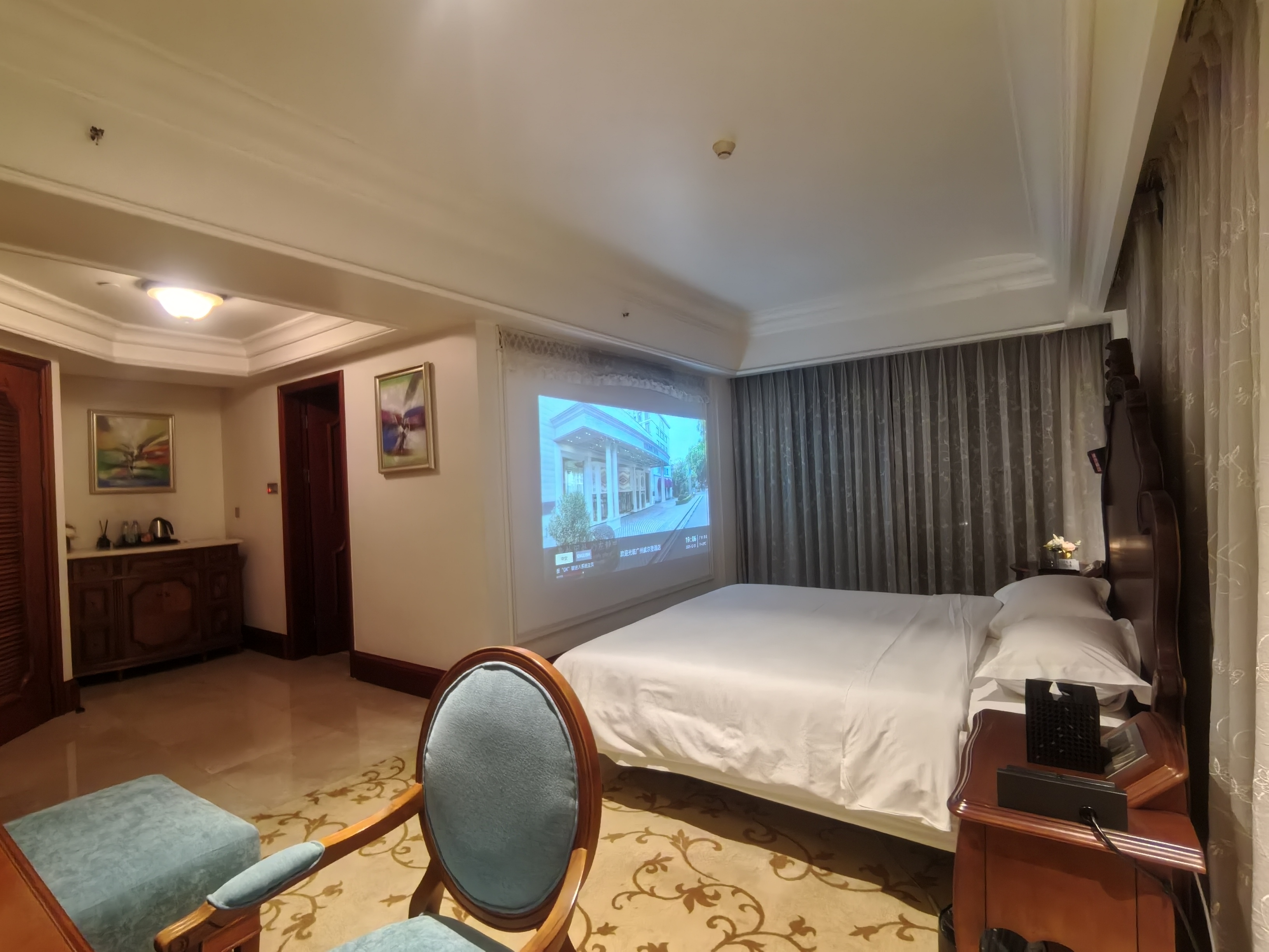 100寸巨幕高清投影阳台园景大床房?抗菌防蟎亲肤布草