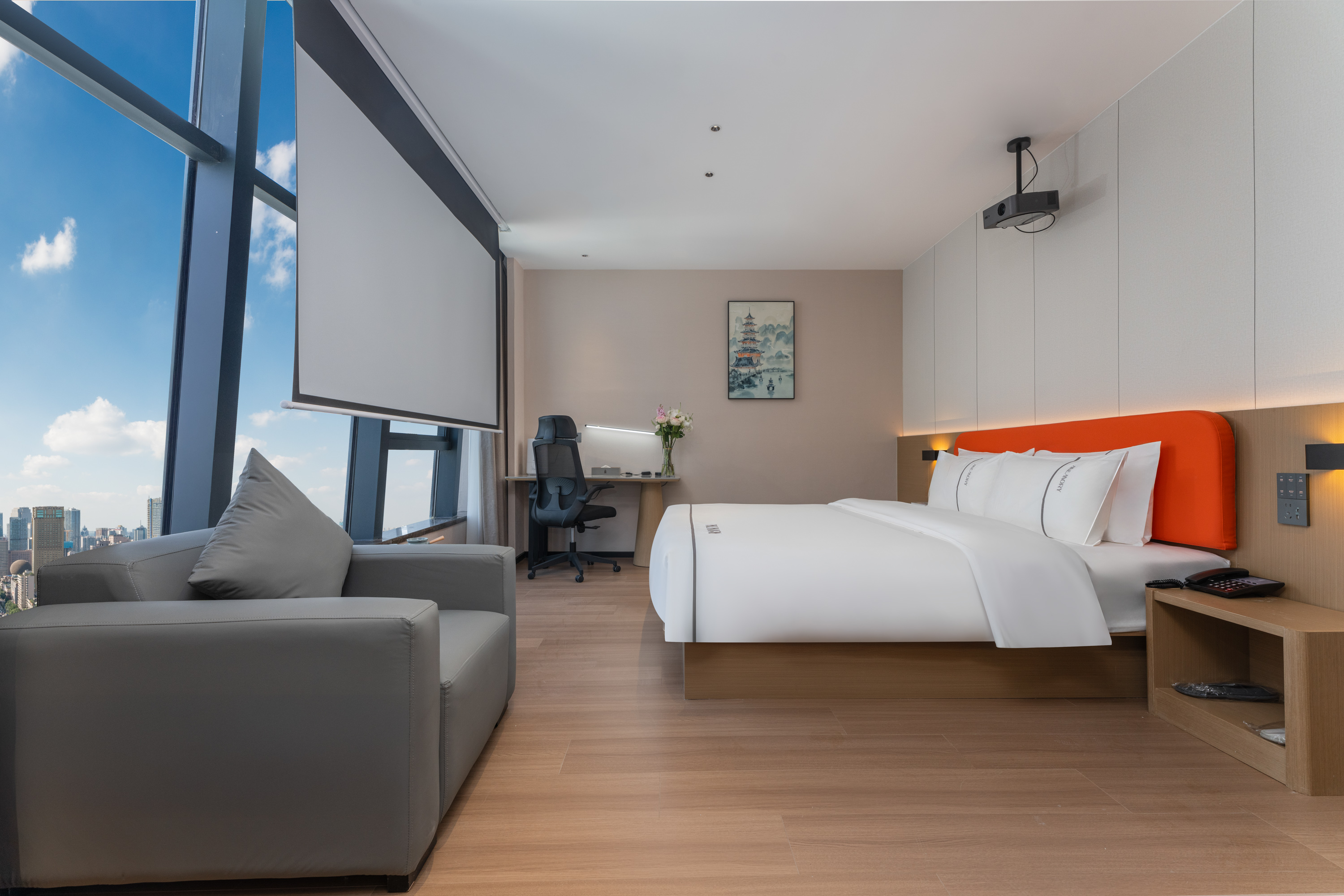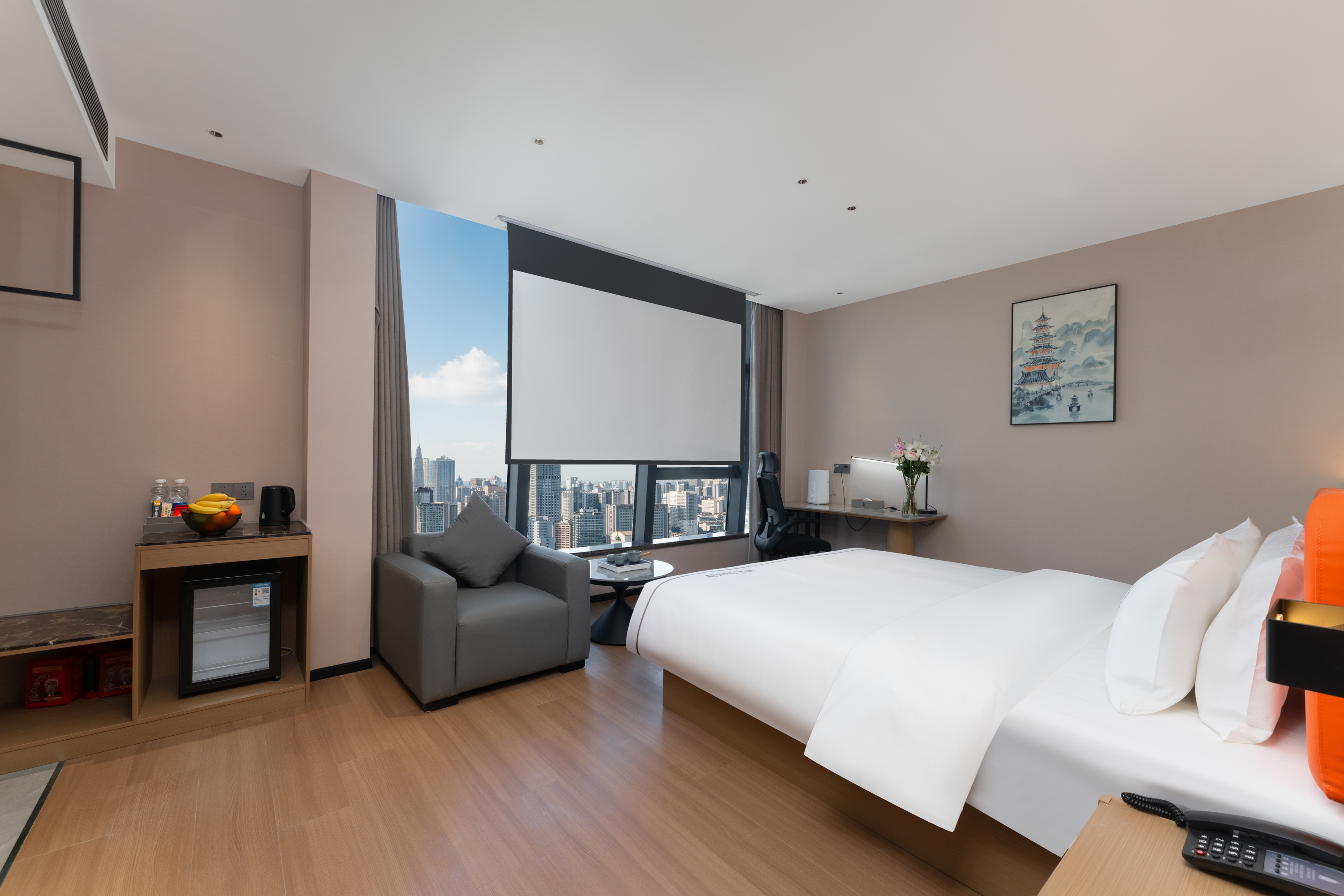 雅致影院大床房(落地飘窗+冰箱+智能加热马桶)