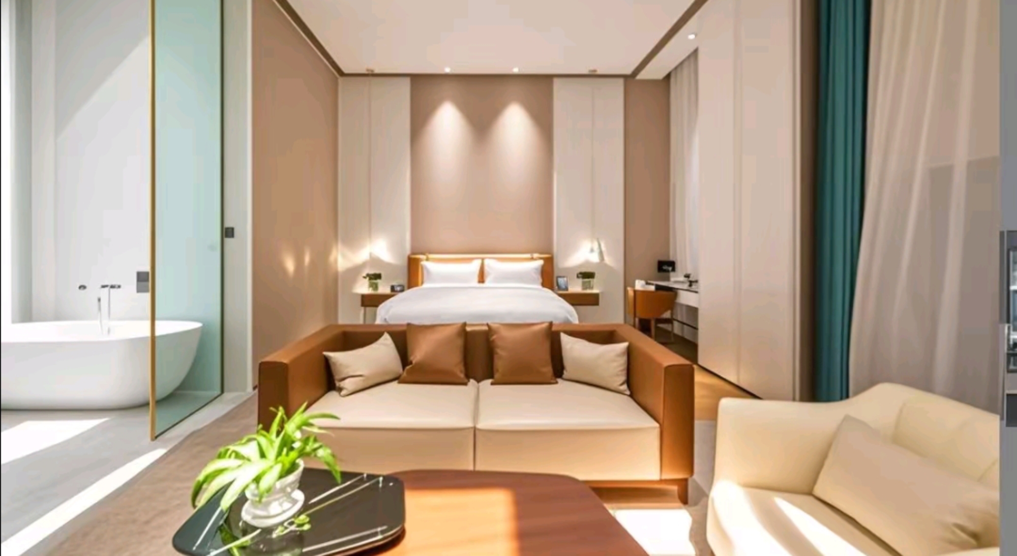 私享行政大床房「实木沙发区+浪漫恒温浴缸+独立办公区」
