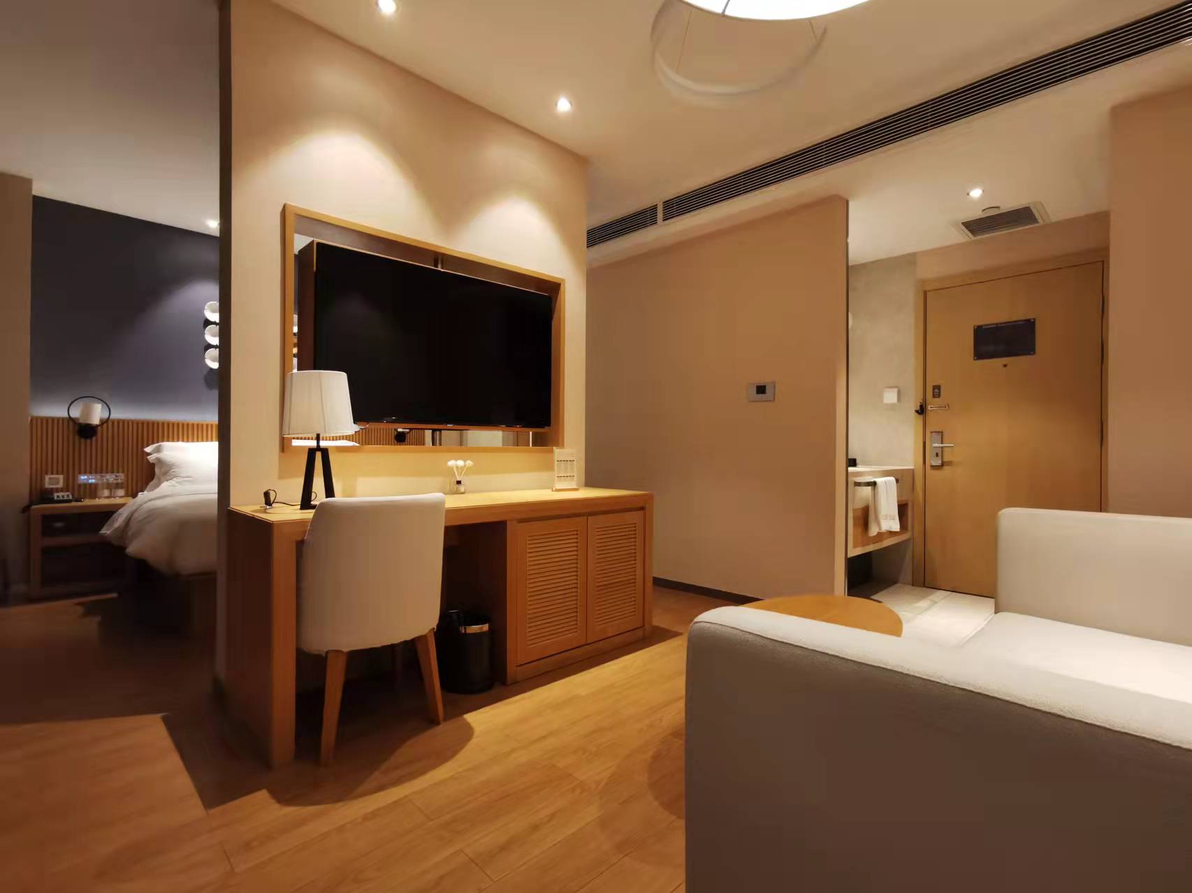 Jiangnan Voice-Controlled Double Bed Room With Electric Curtains And Mini Fridge