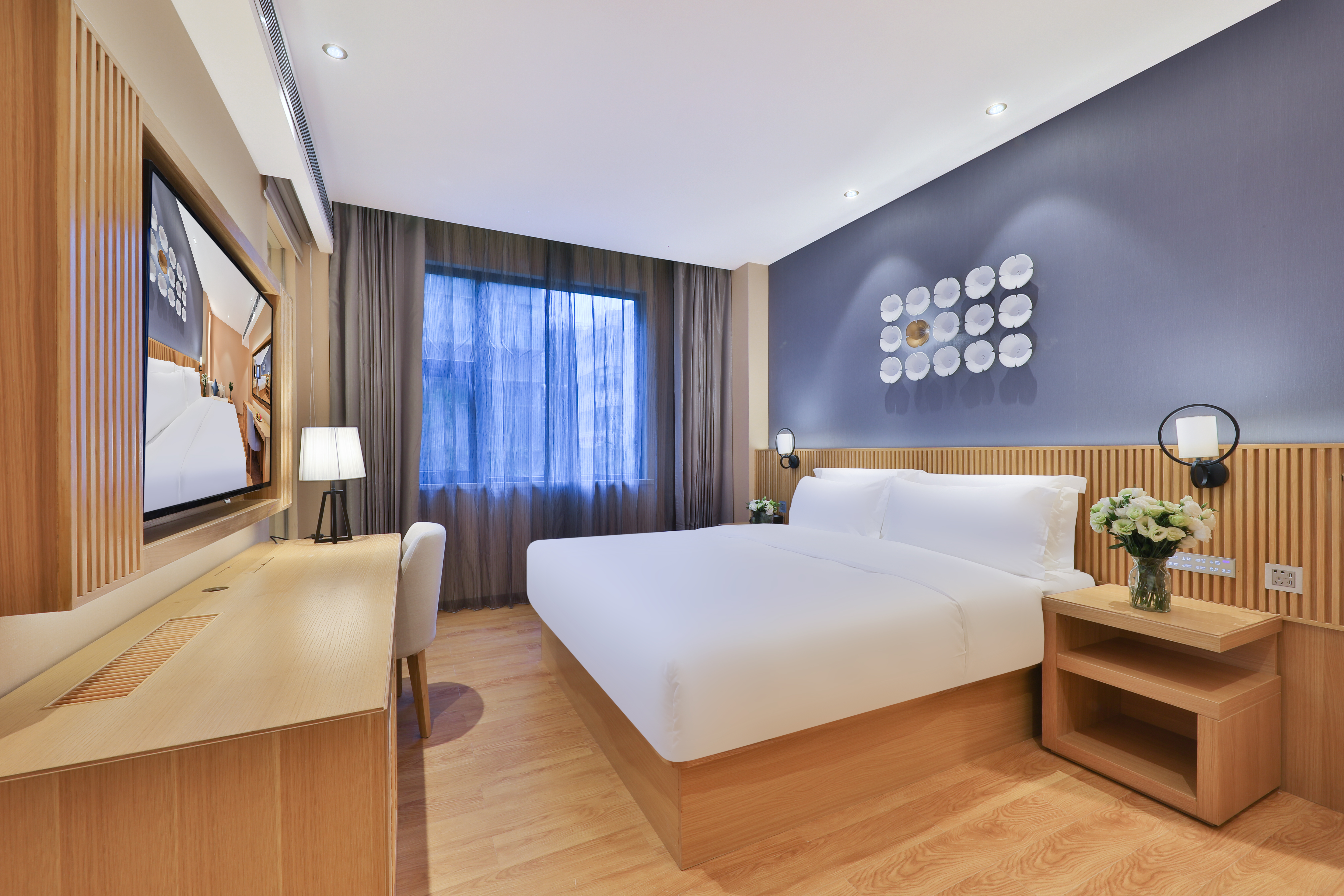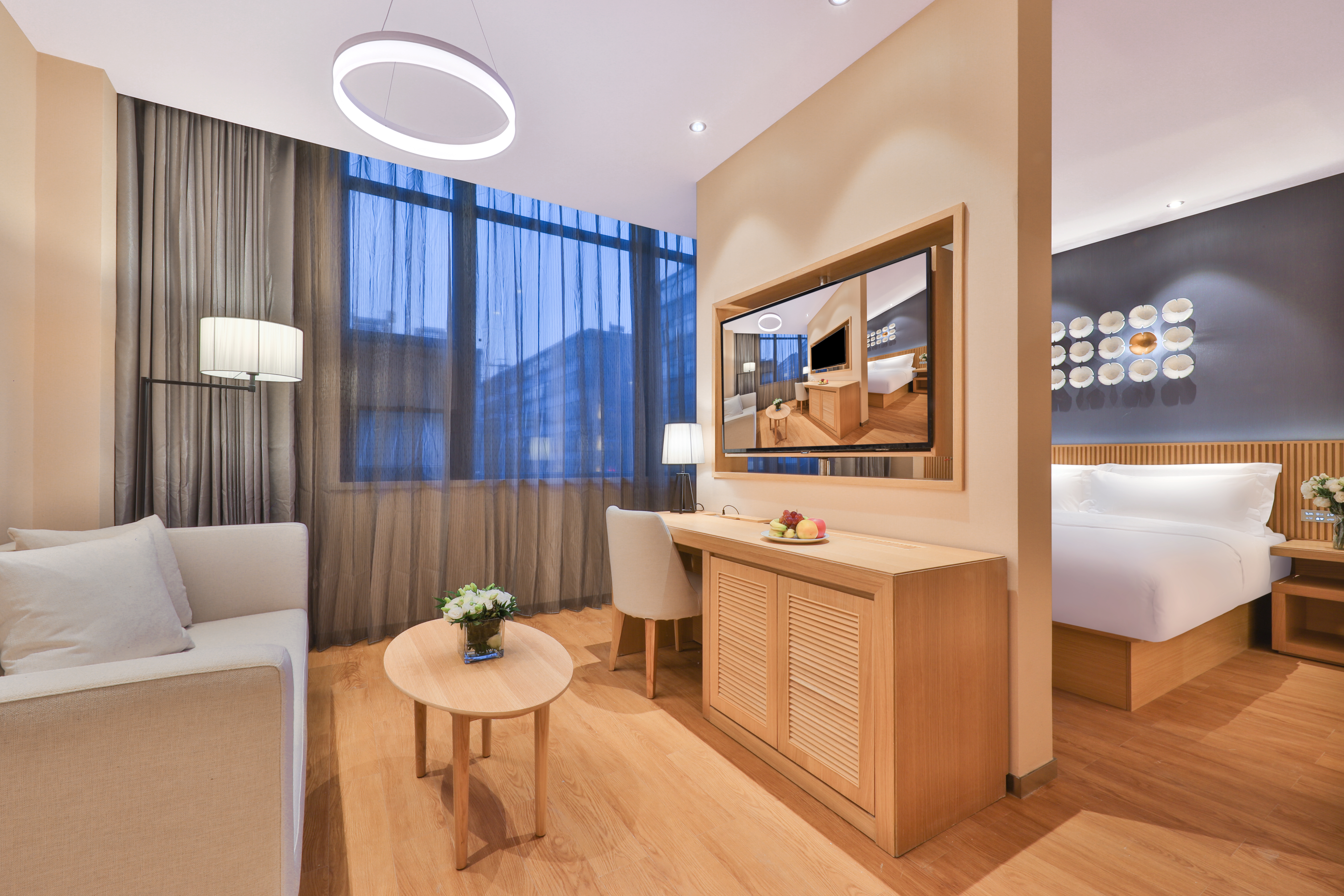 Blossoming Suite With Voice Control, Electric Curtains, And Mini Fridge