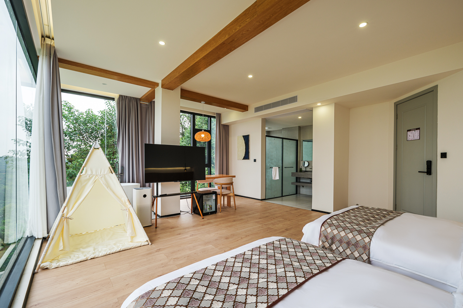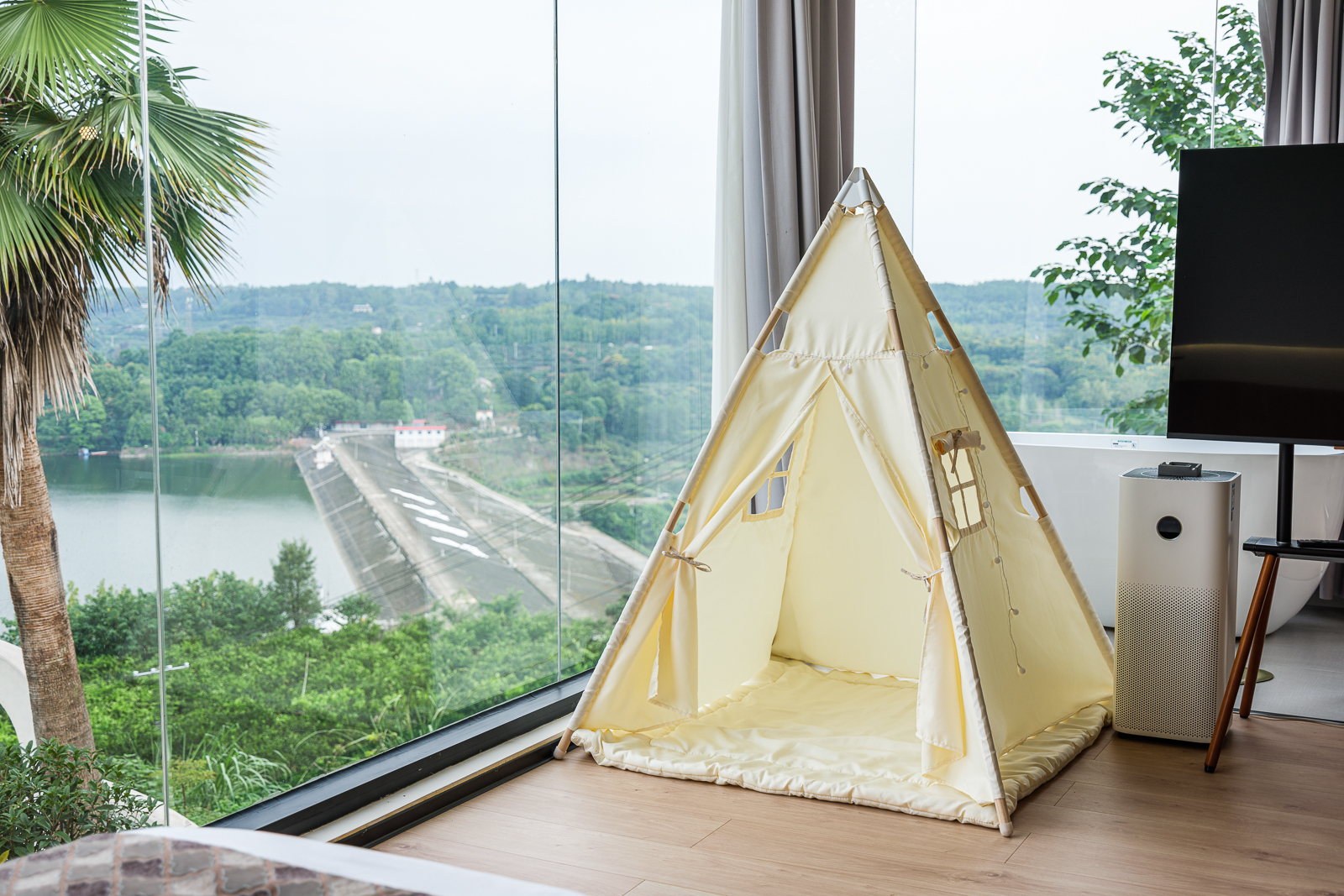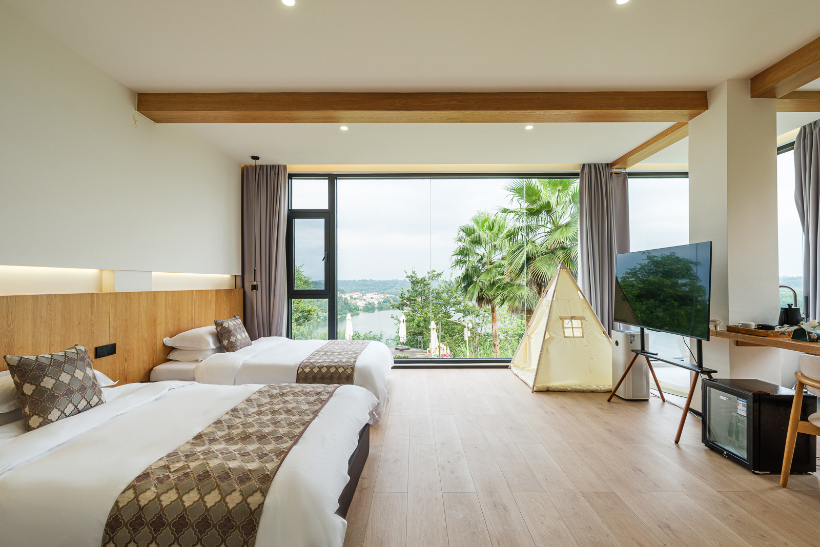 【花屿·月】直面湖景标间+[舒适好眠床品]+舒适浴缸+童趣帐篷+迷你小冰箱+智能客控+jayine音响