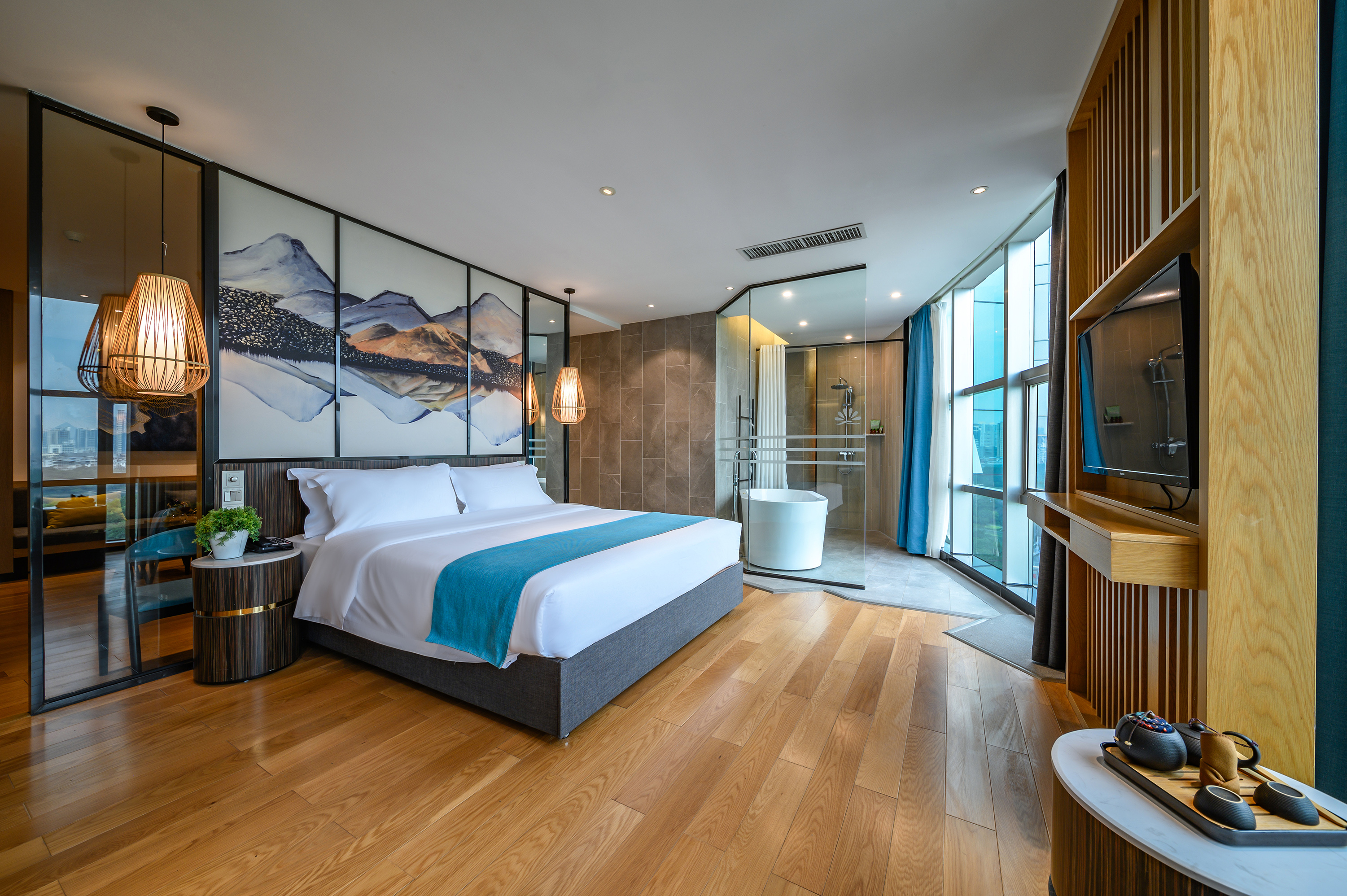 Lake-View Executive Double Bed Room (Facing South Lake + Exquisite Tea Set + Reception Area)