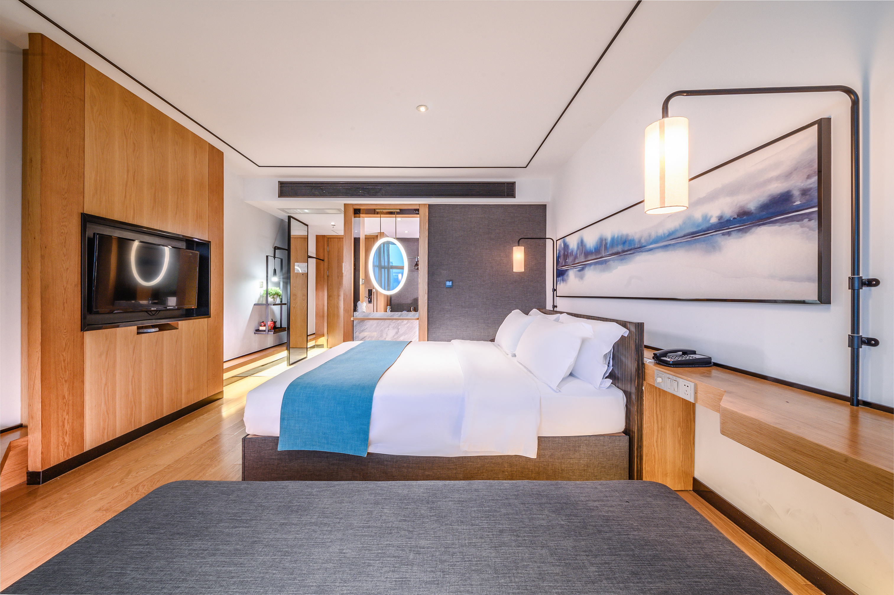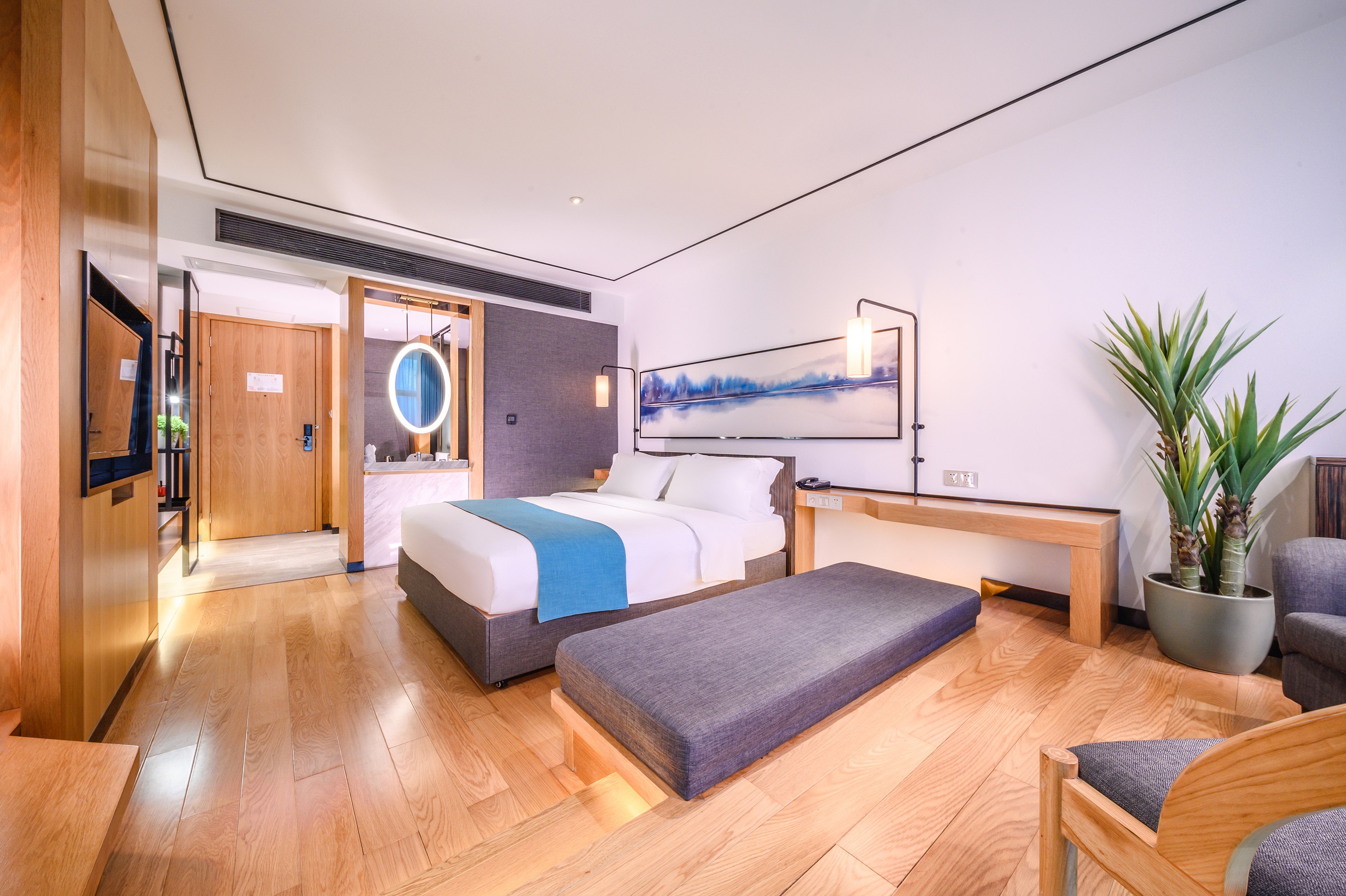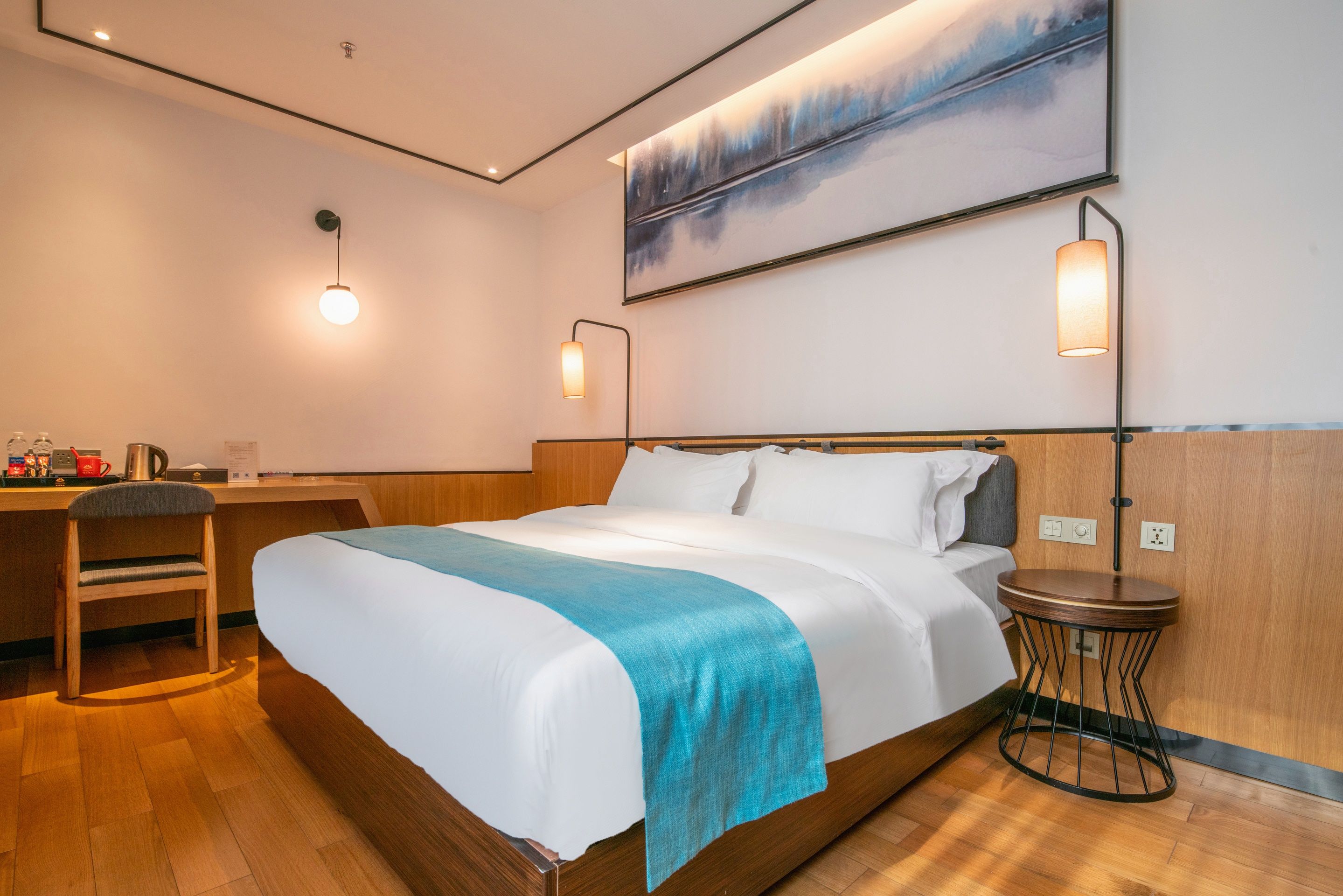 Lake-View Business Double Bed Room (Beautiful Lake View + Exquisite Tea Set + Comfortable Workspace)