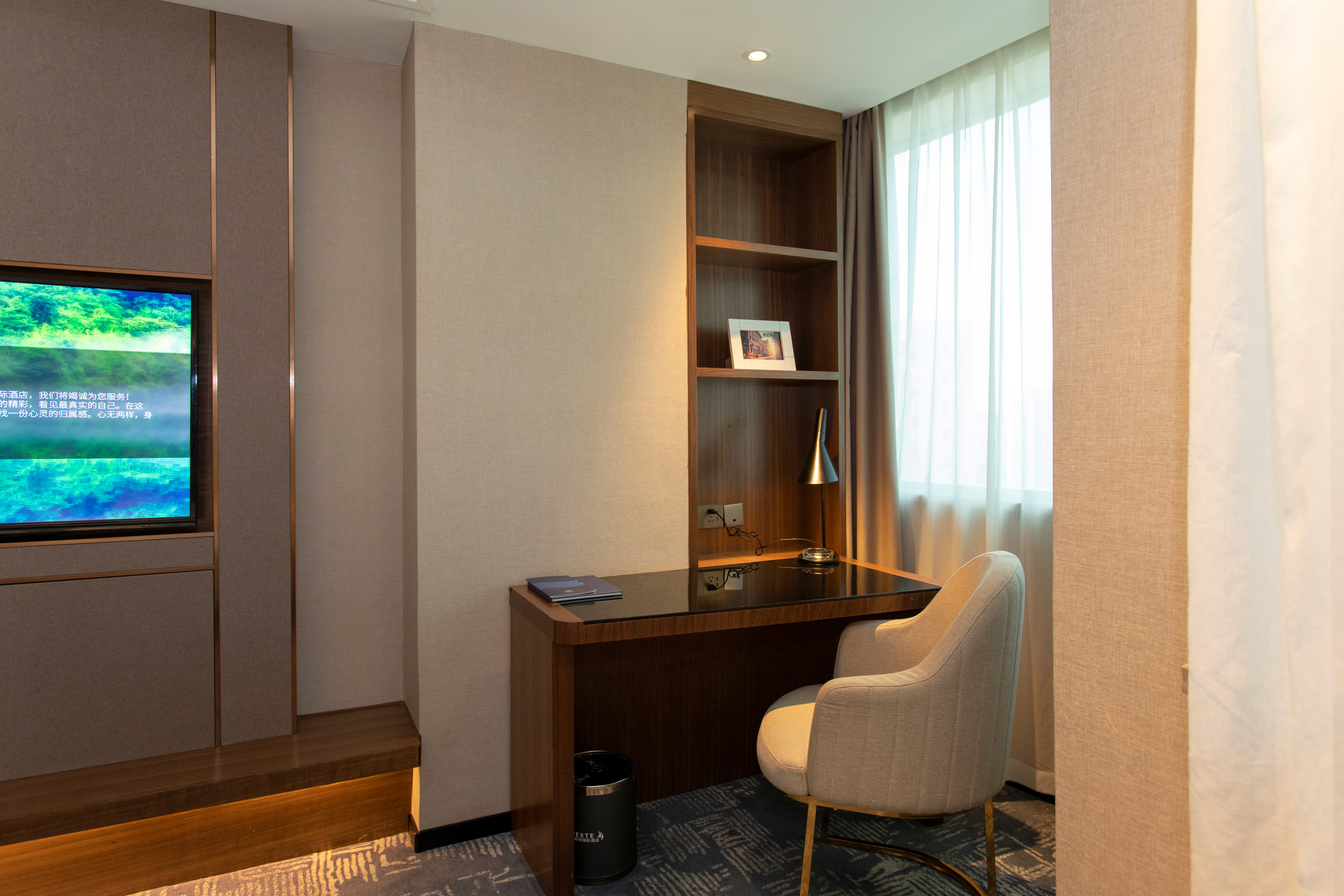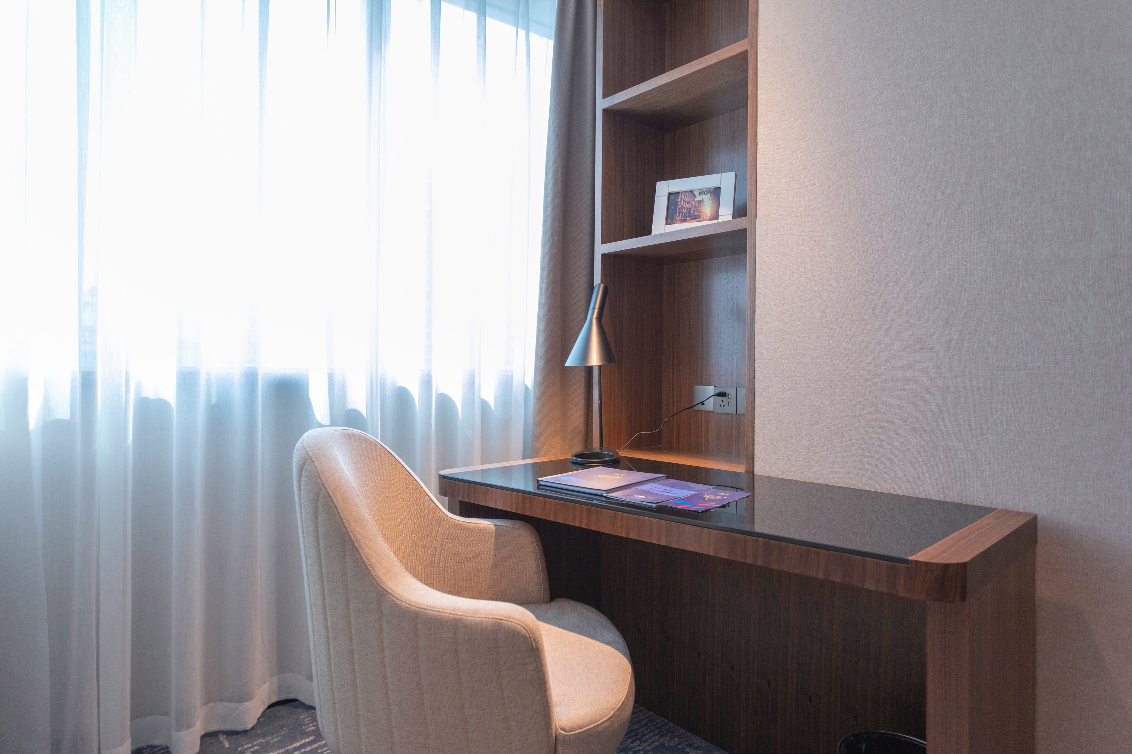 Scenic Double Bed Room With City View And Office Desk And Chair