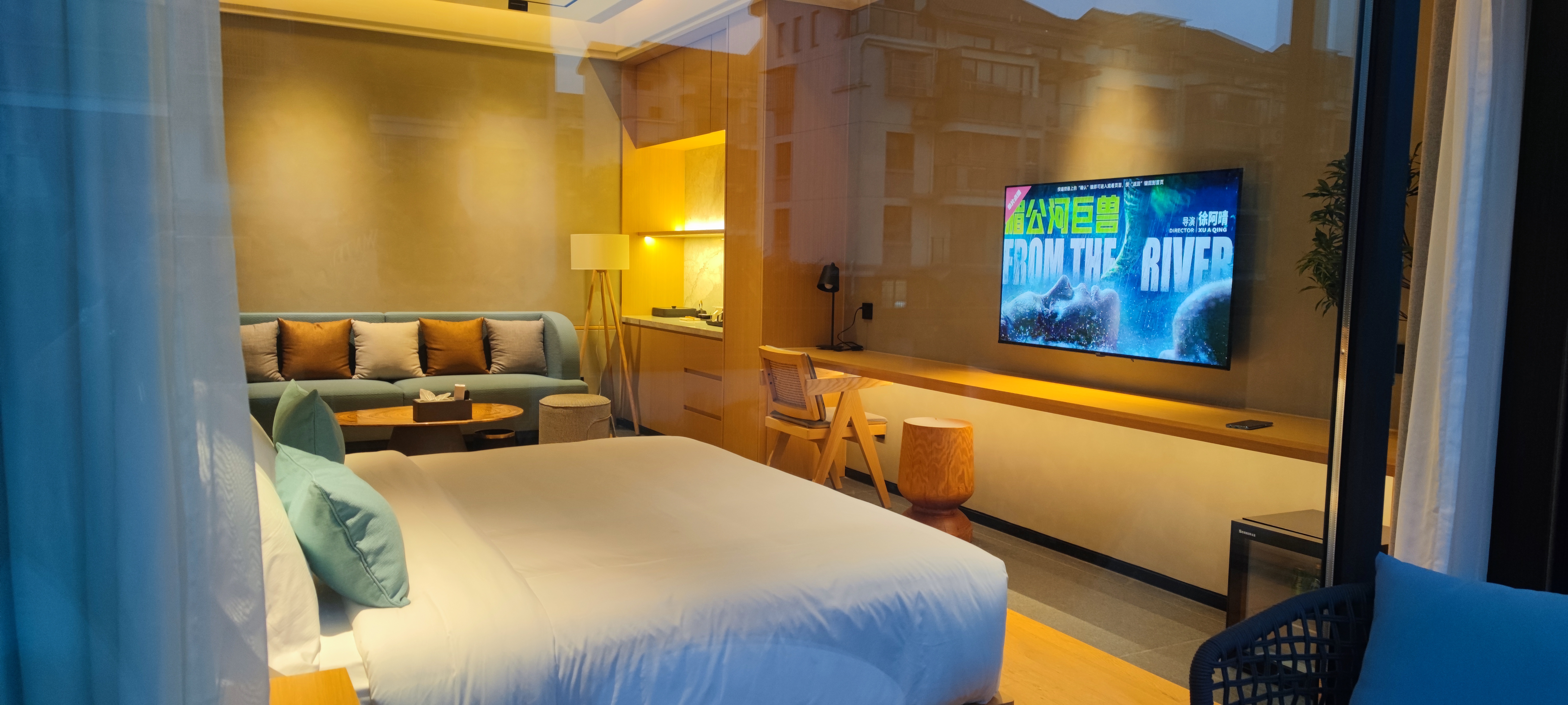 Lingjunju Riverside Balcony Double Bed Room