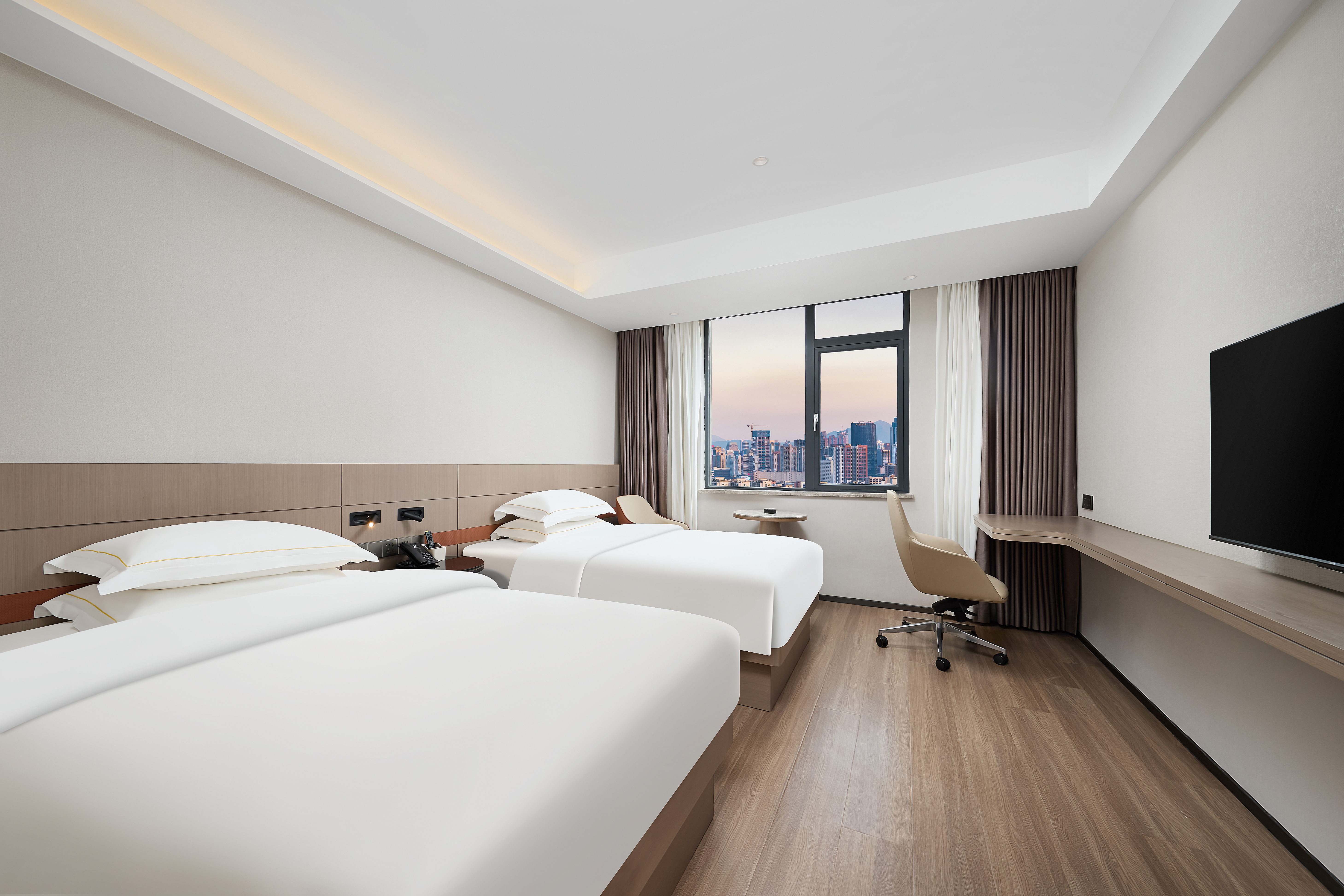 自在·豪华双床房(坐卧沙发+光线明亮+城市景色)