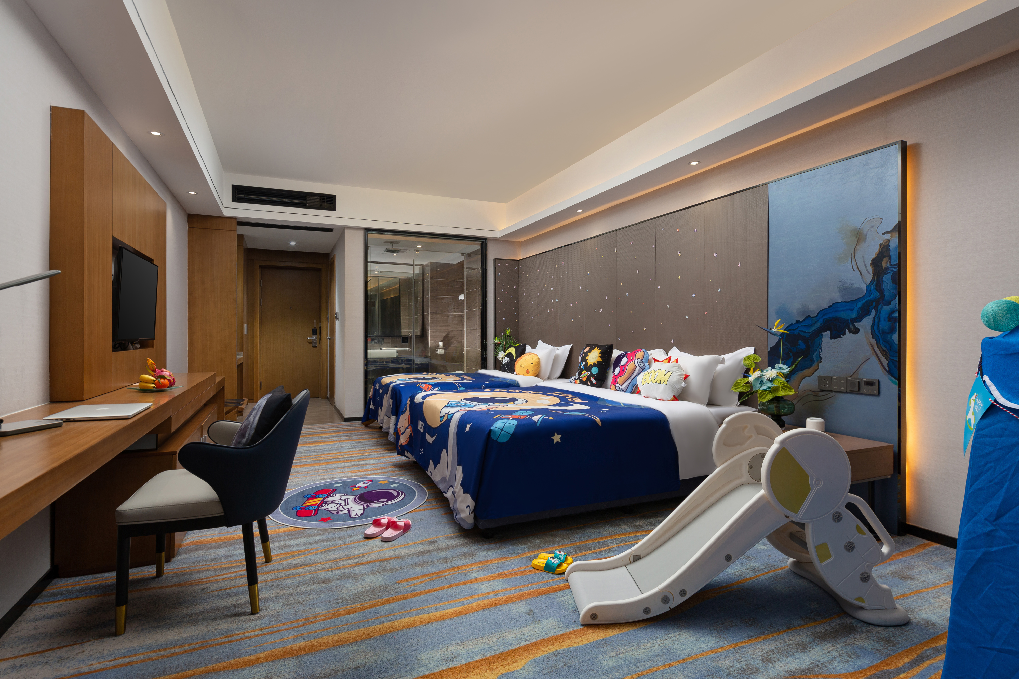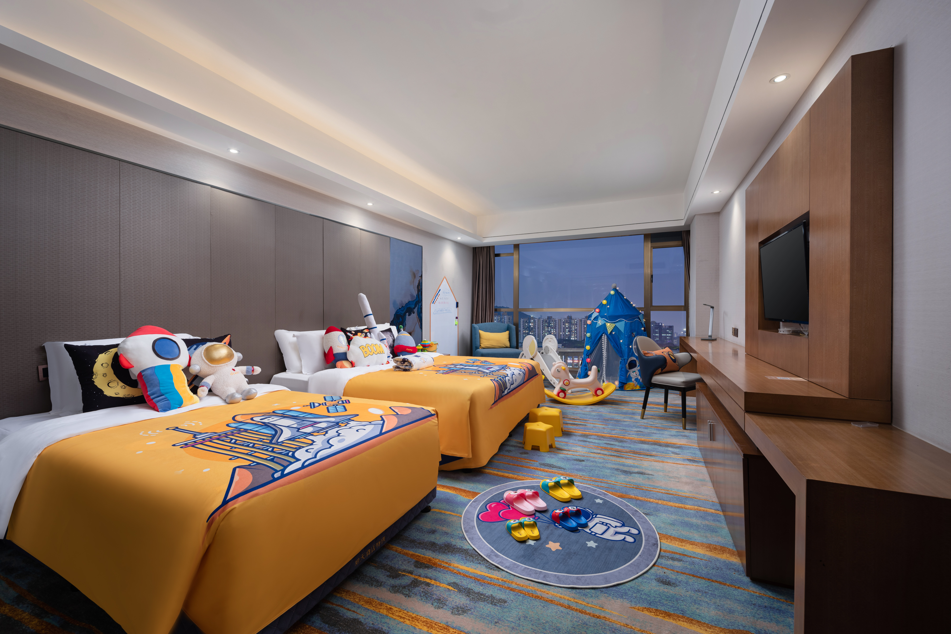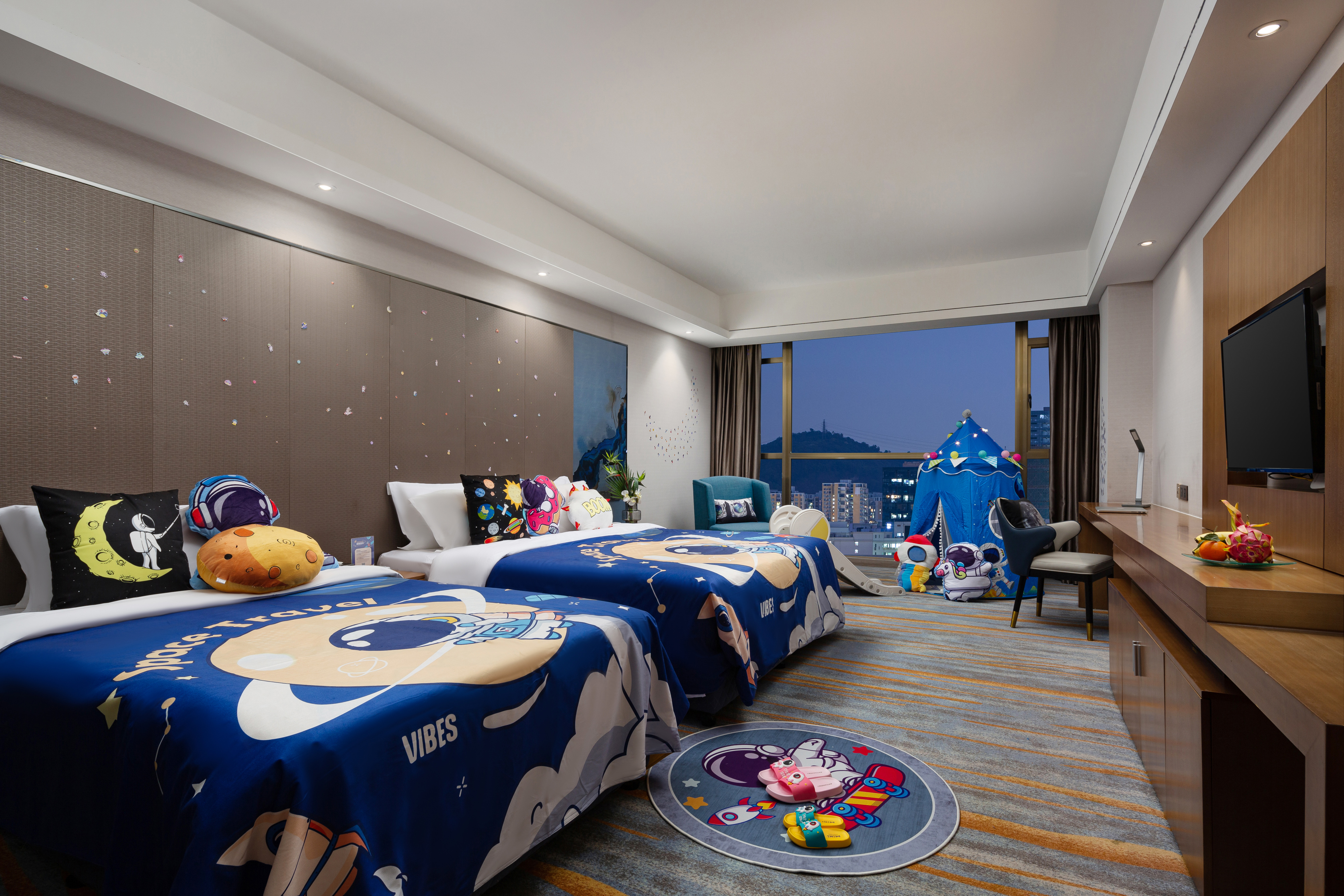 明天·臻选家庭亲子度假主题双床房|落地全景+滑滑梯+帐篷+深睡助眠床垫