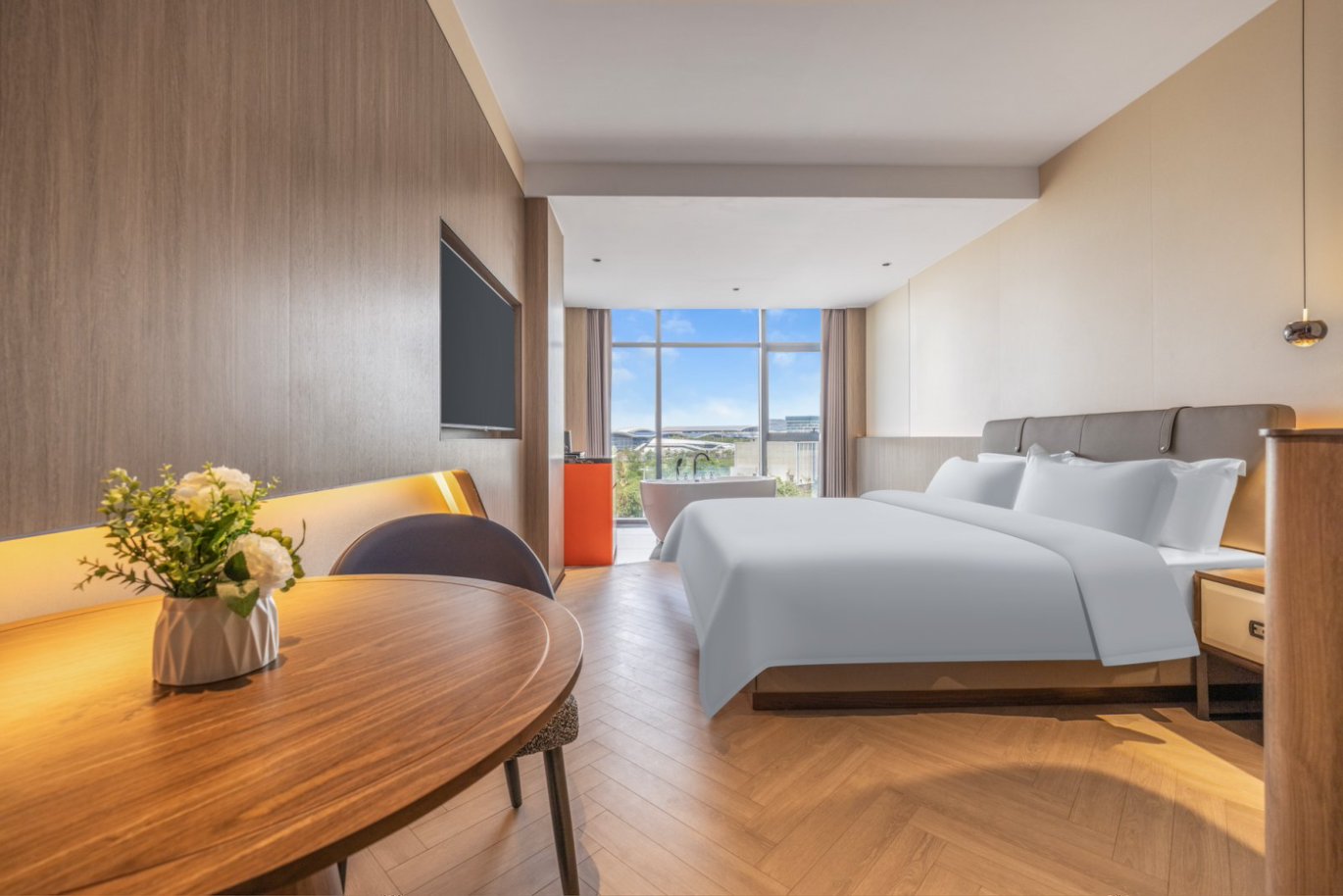 尊享浴缸大床房【全景落地窗+智能客控投屏+小冰箱】