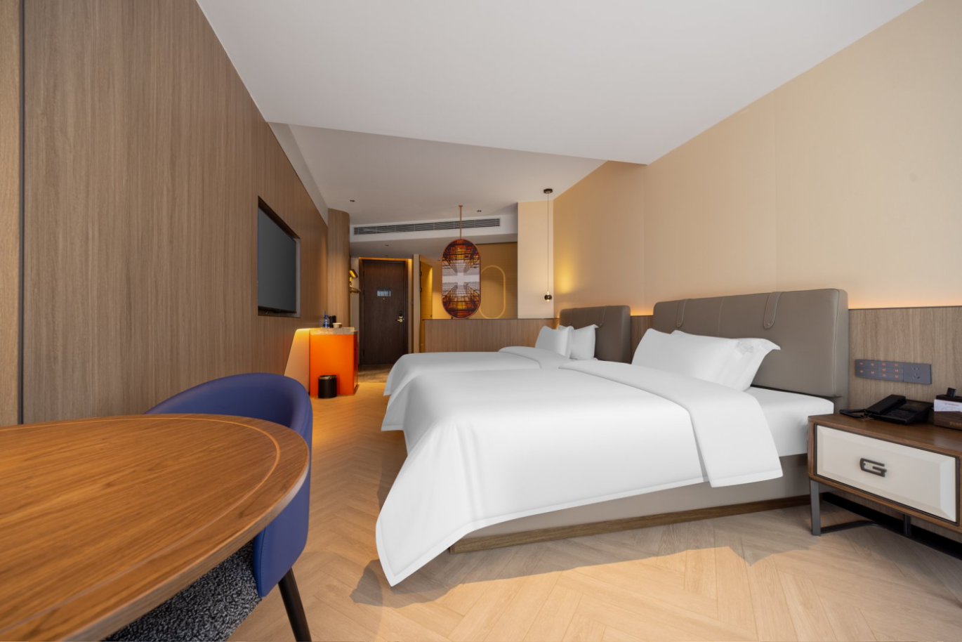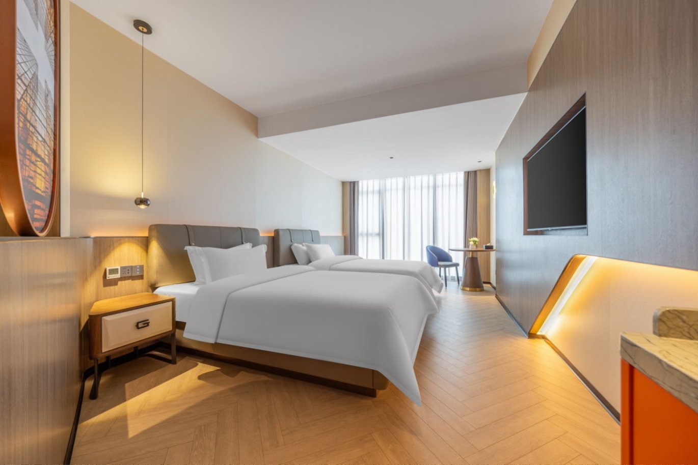 尊贵双床房【全景落地窗+智能客控投屏+小冰箱】