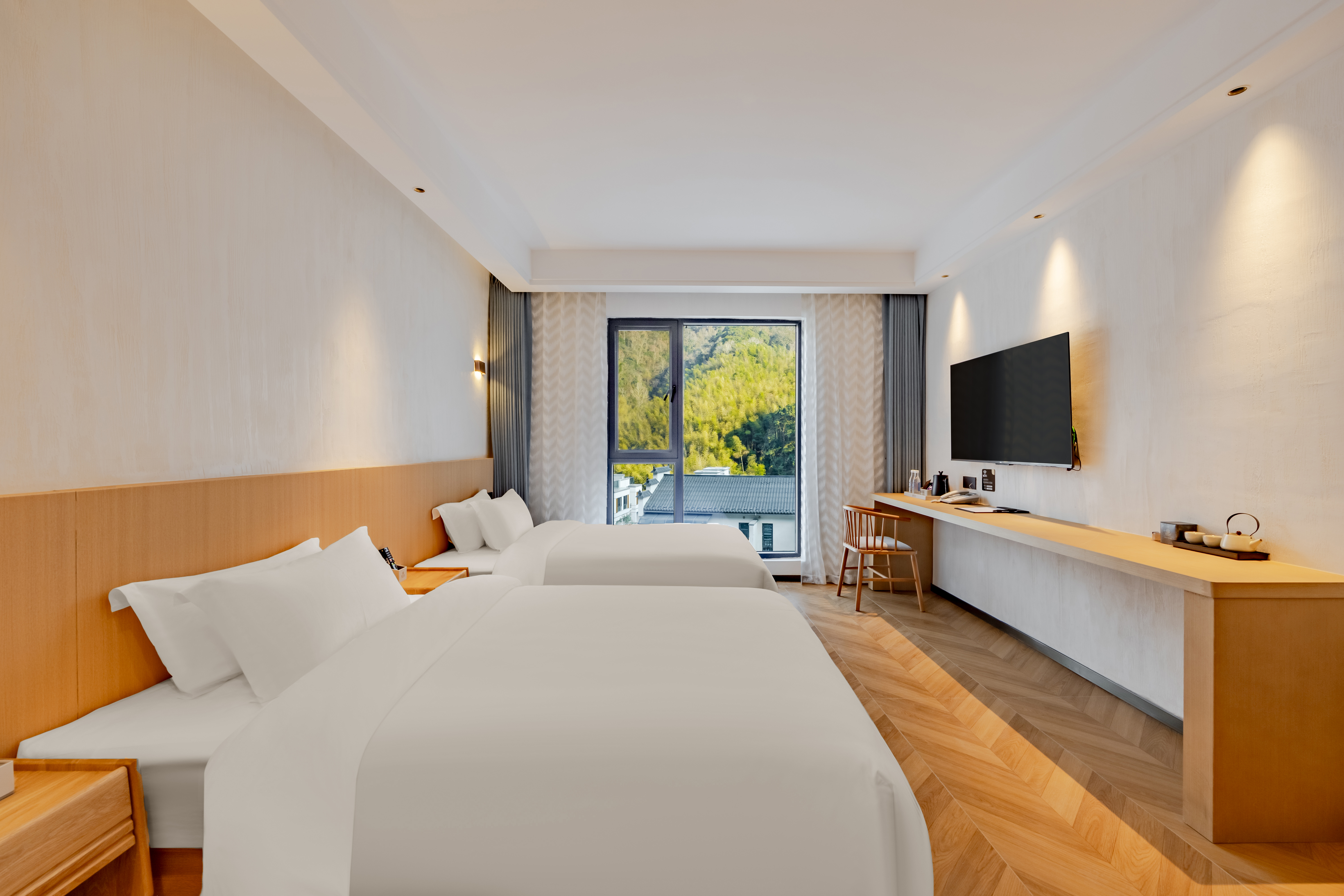 悦享双床房|独栋硒养客房+文娱厅+远眺山景+落地园景