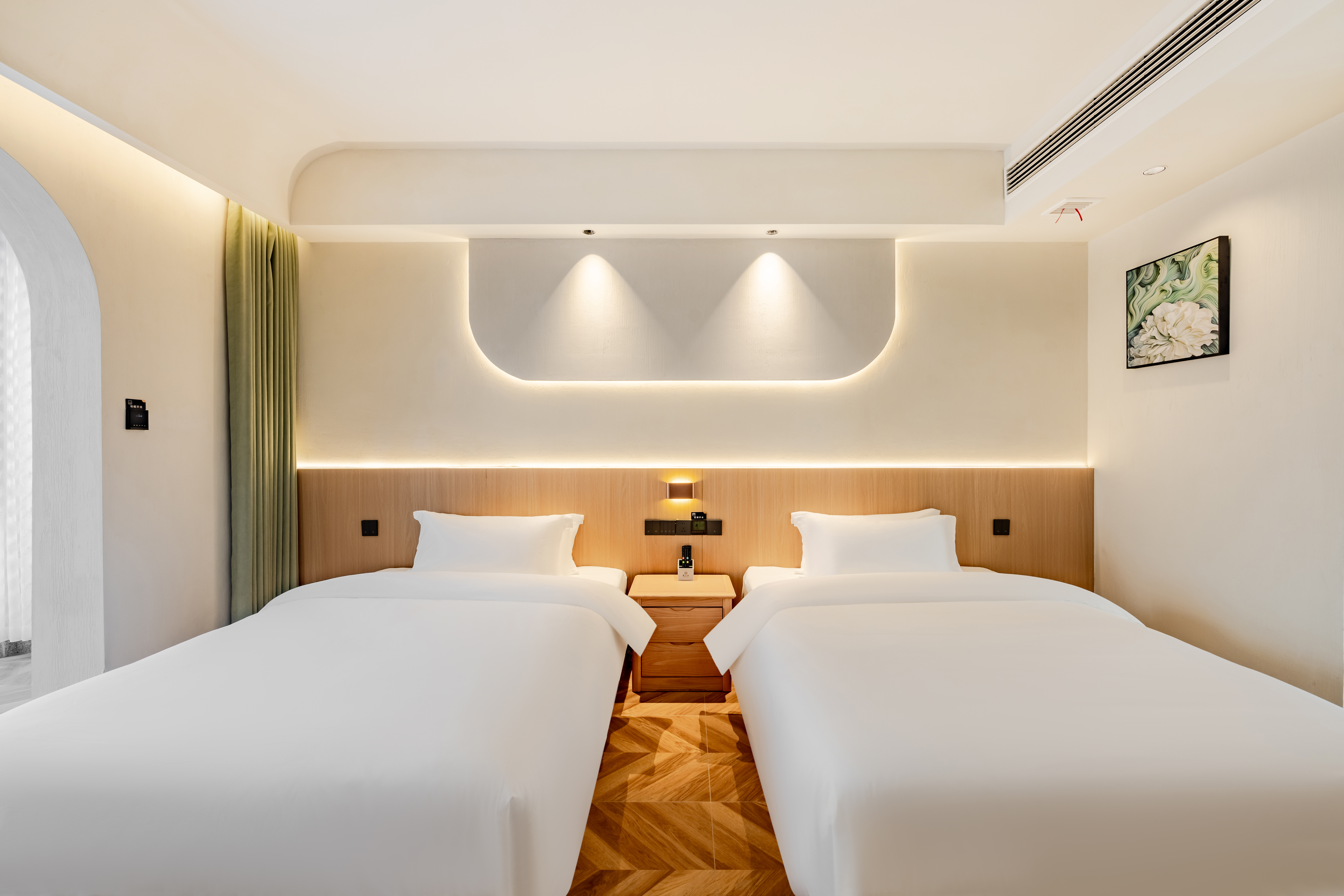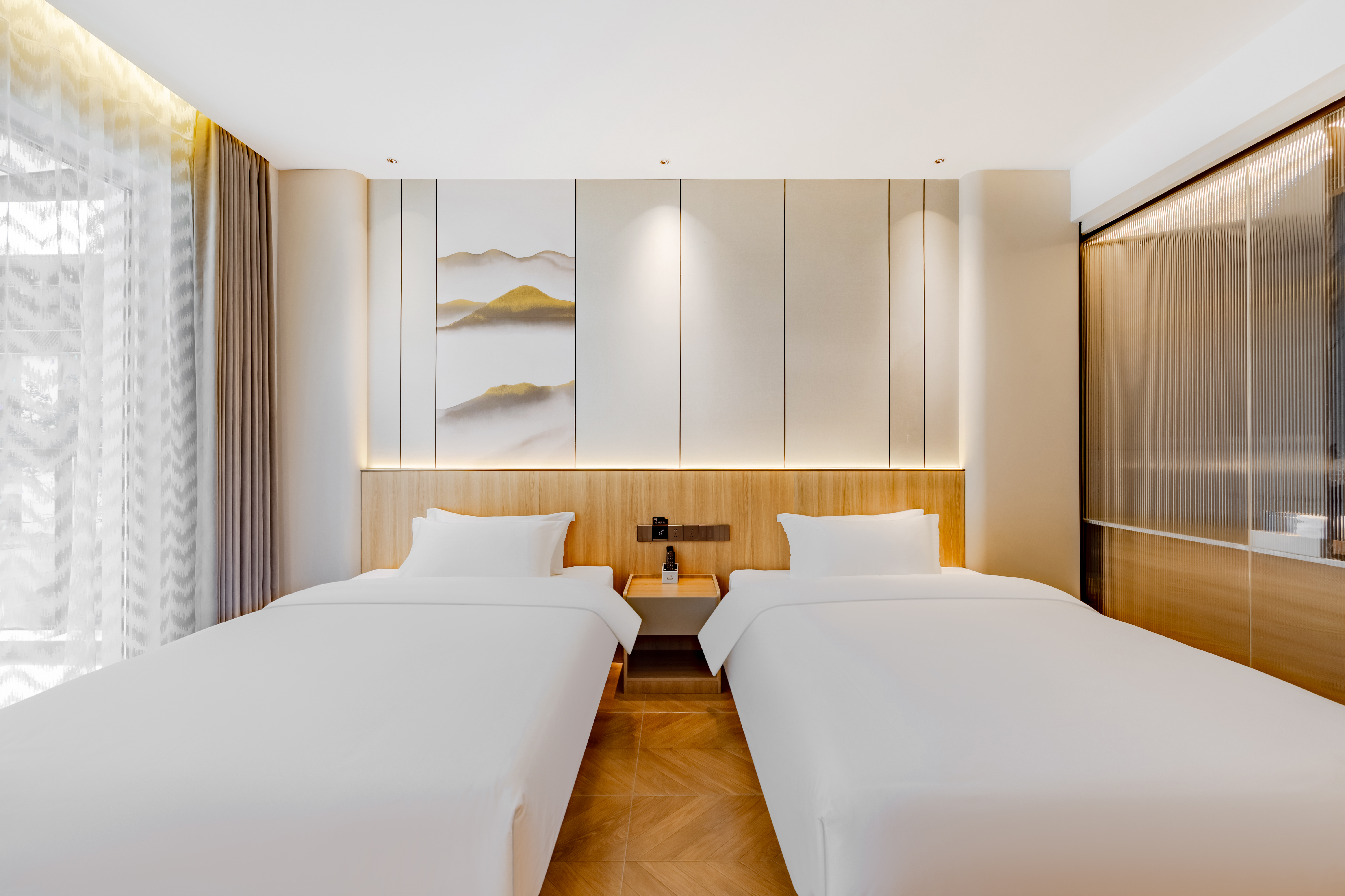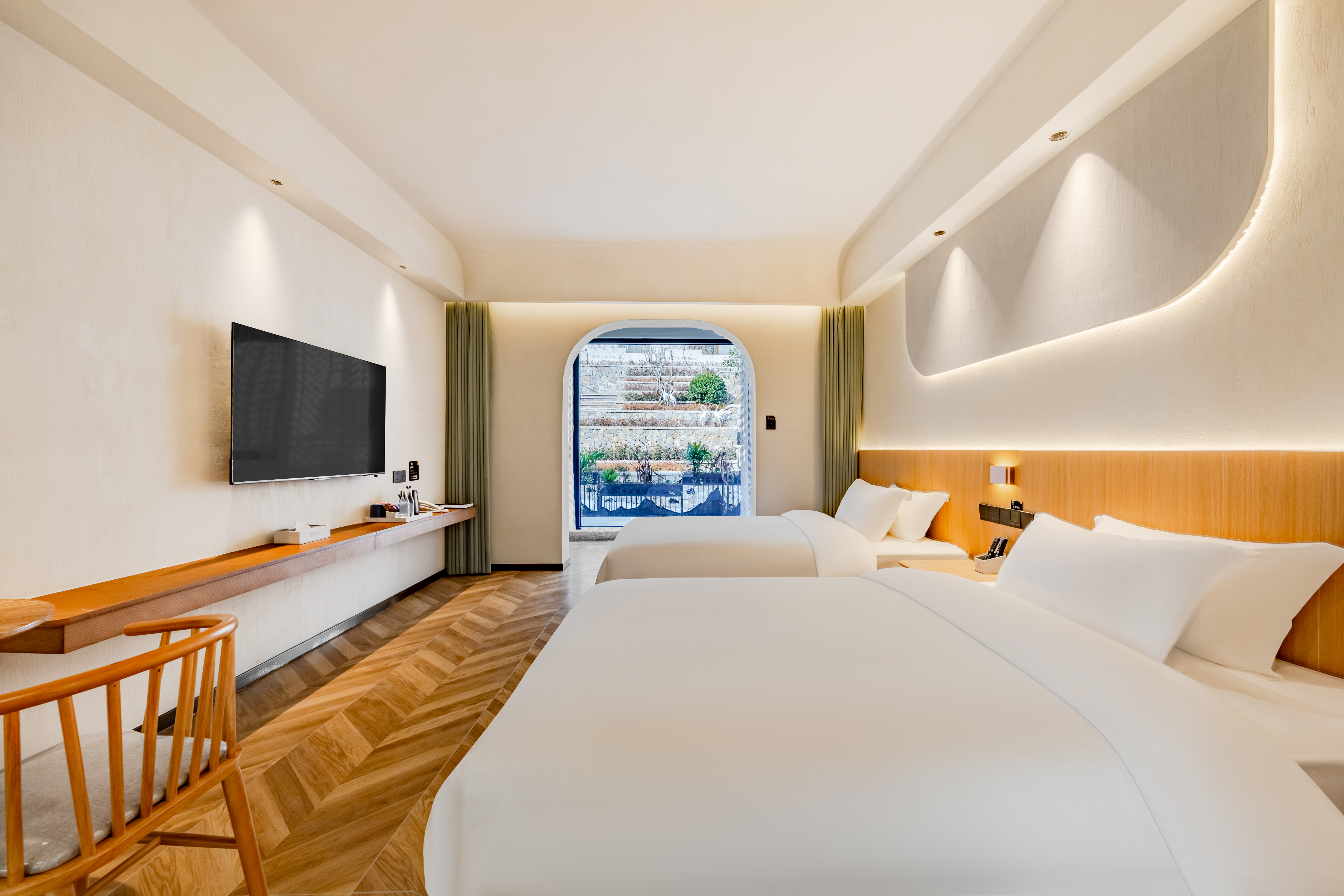 畅享双床房|独栋硒养客房+出入庭院+全屋地暖+园景环抱