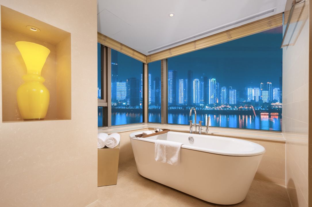 浪漫布置270度尊贵江景客房丨卧室及浴室享一线江景