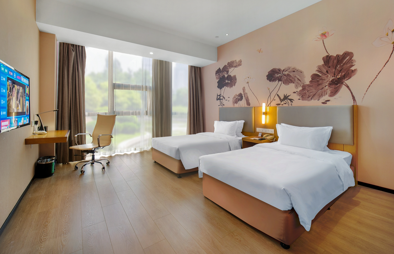 豪华双床房「180°落地窗+舒睡床品+温馨灯光」
