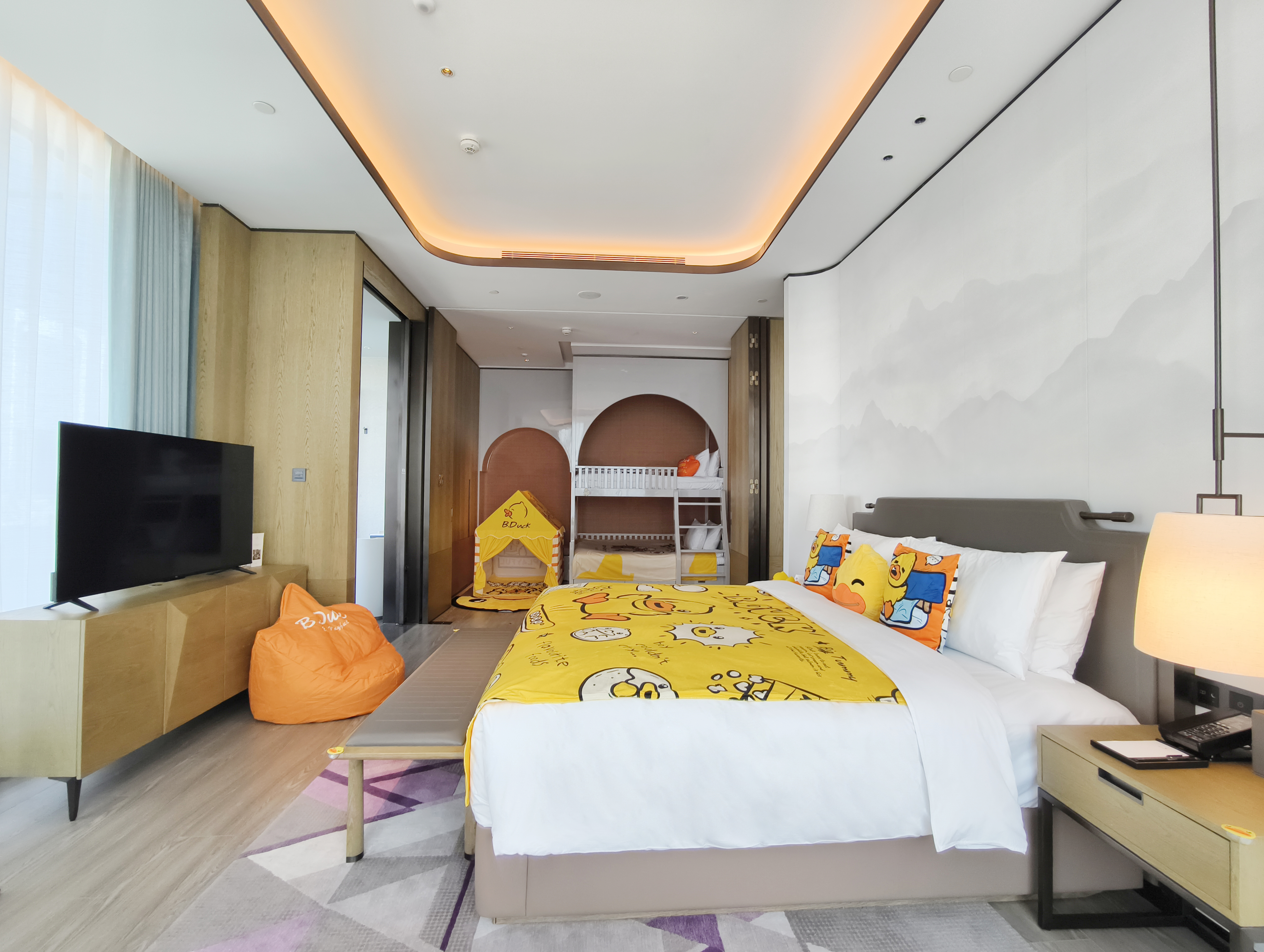 一室一厅|小黄鸭主题家庭房-小童上下铺+游戏区