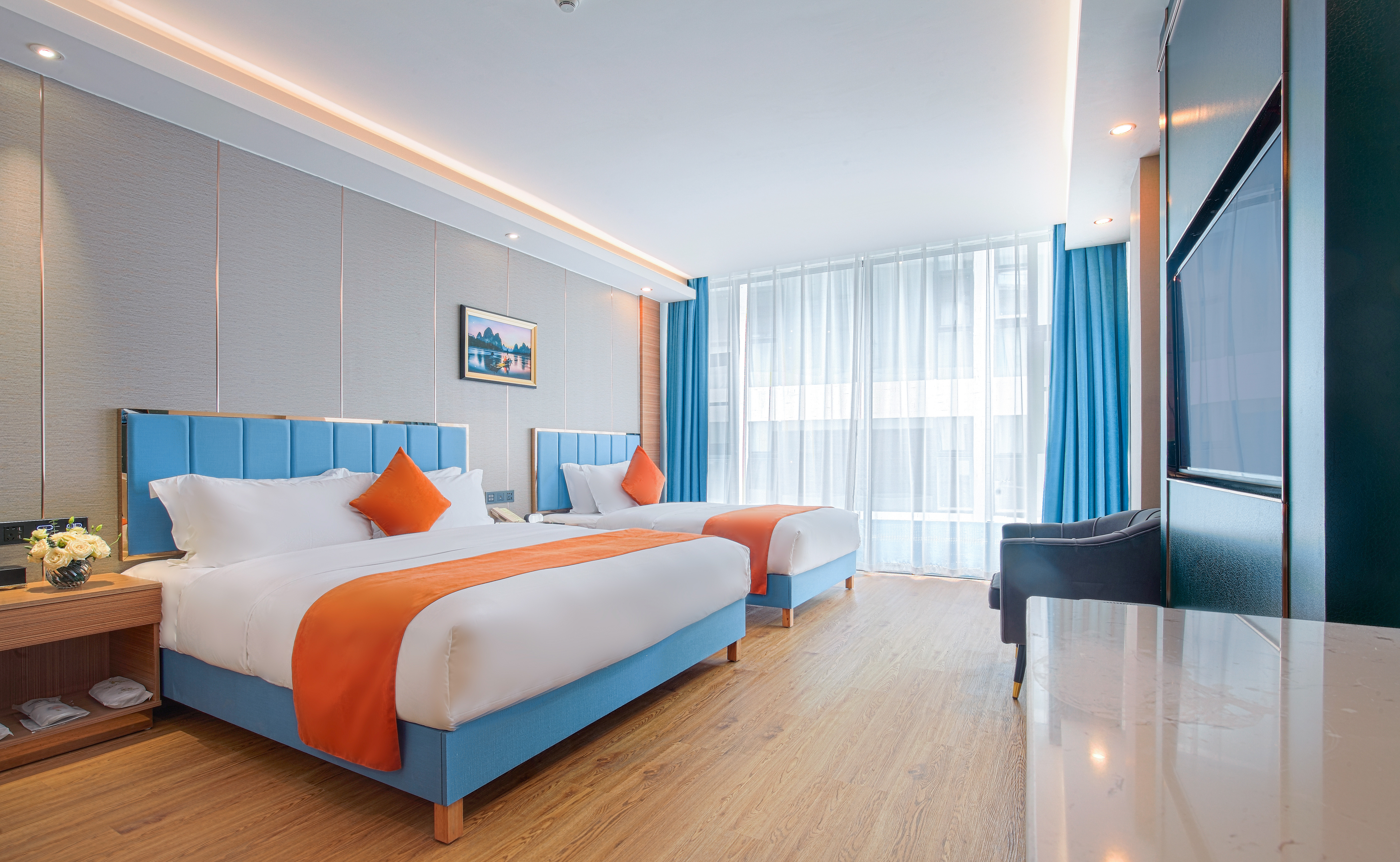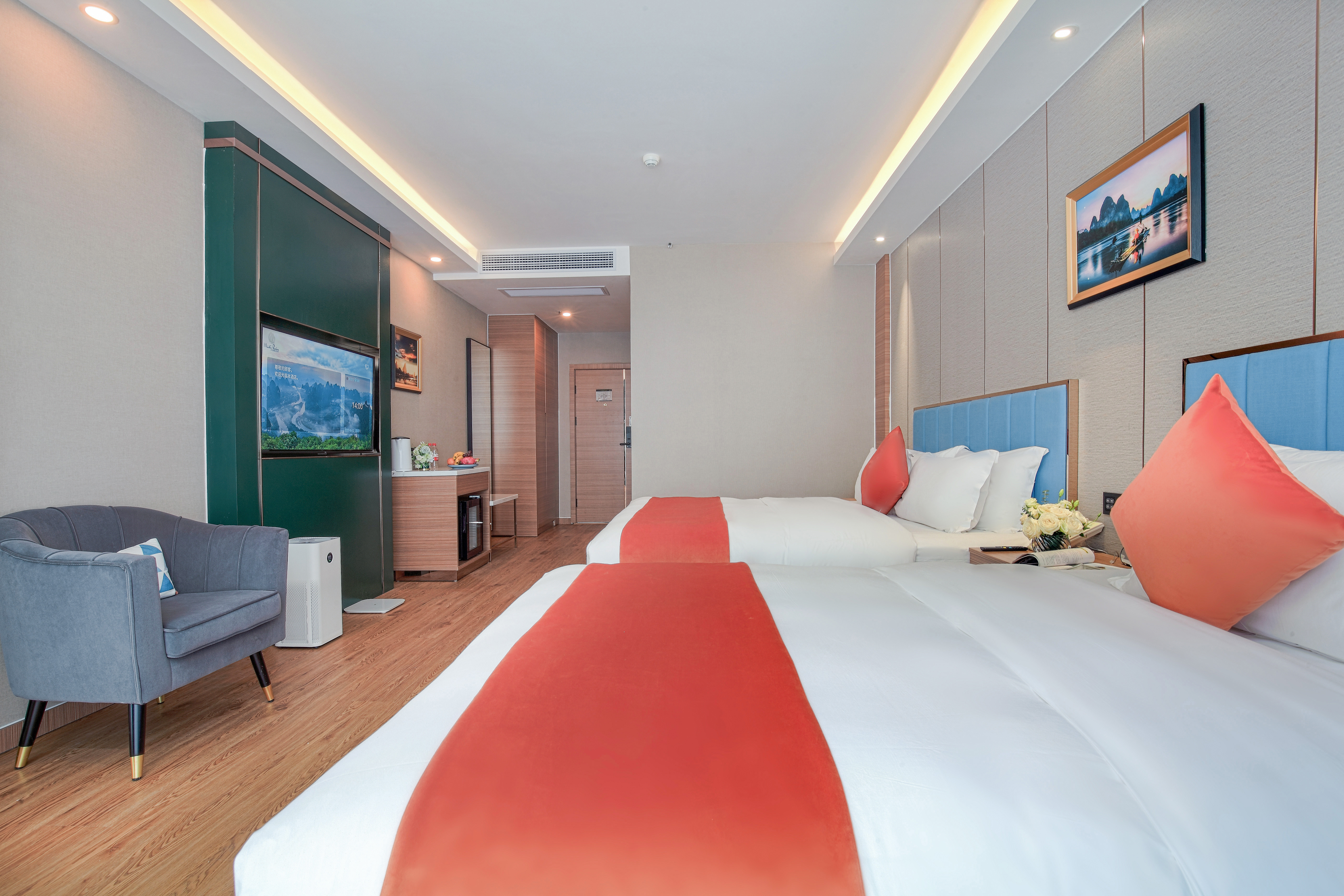 主楼·漓江新雨双床房(空气净化器+电动窗帘+小冰箱)