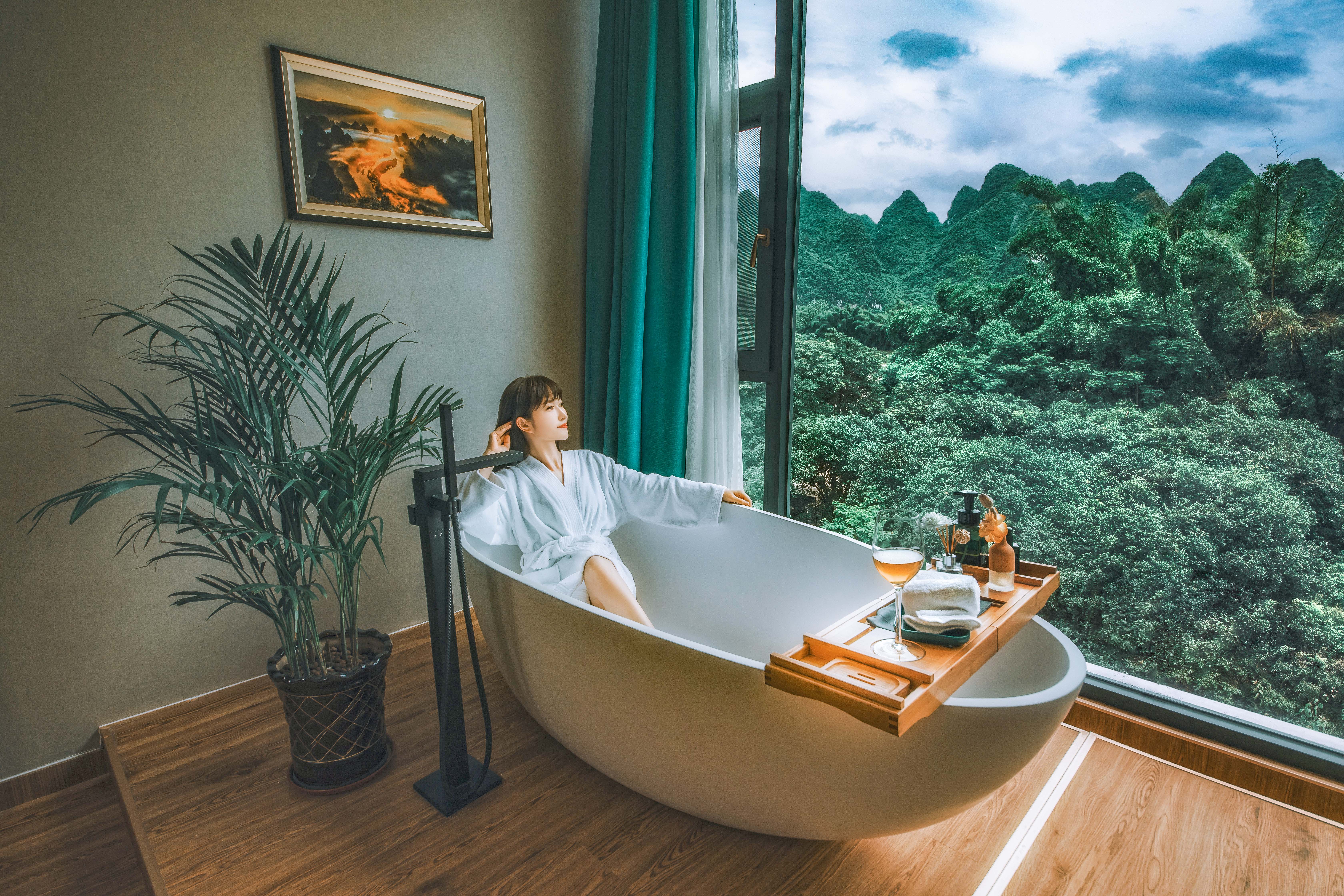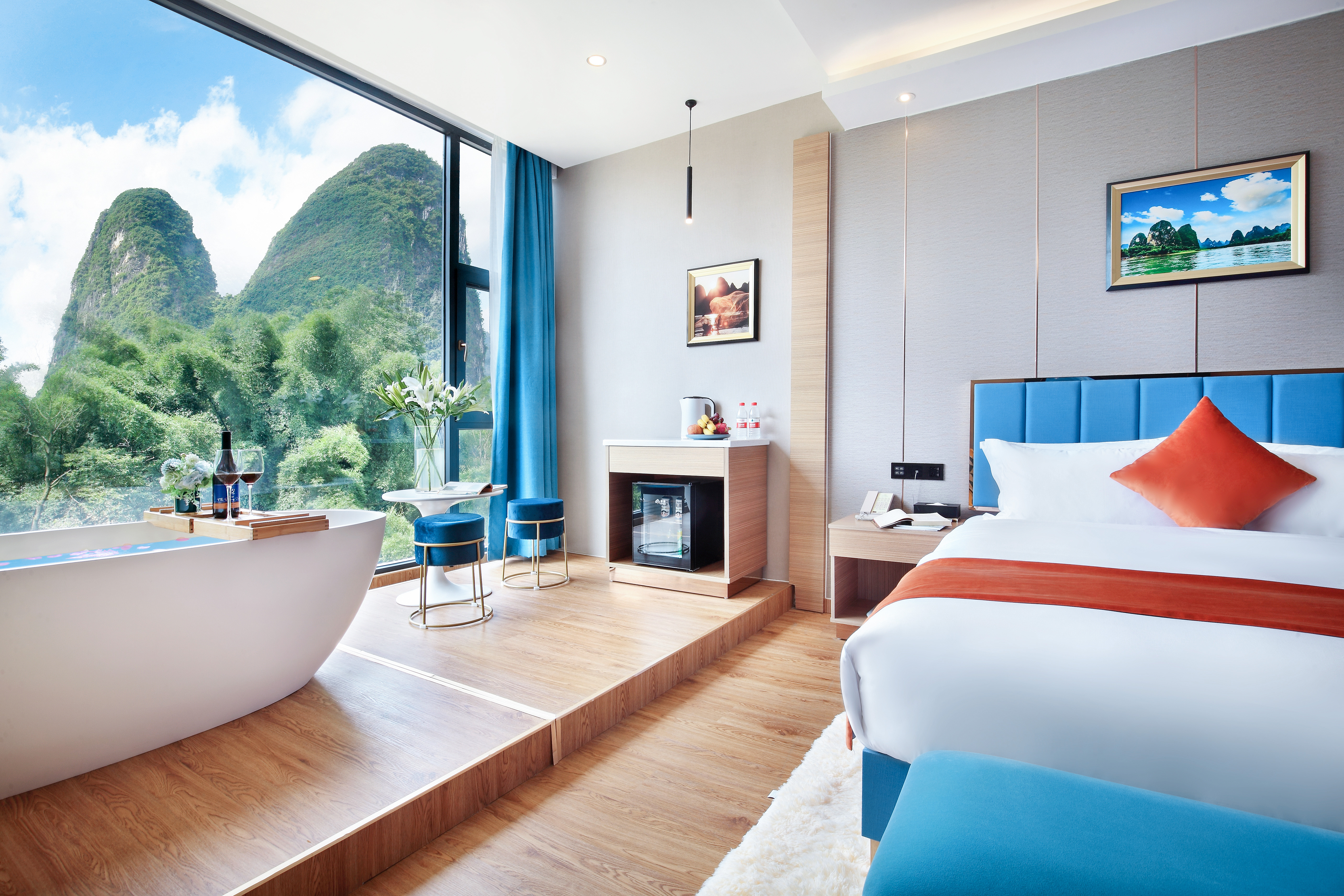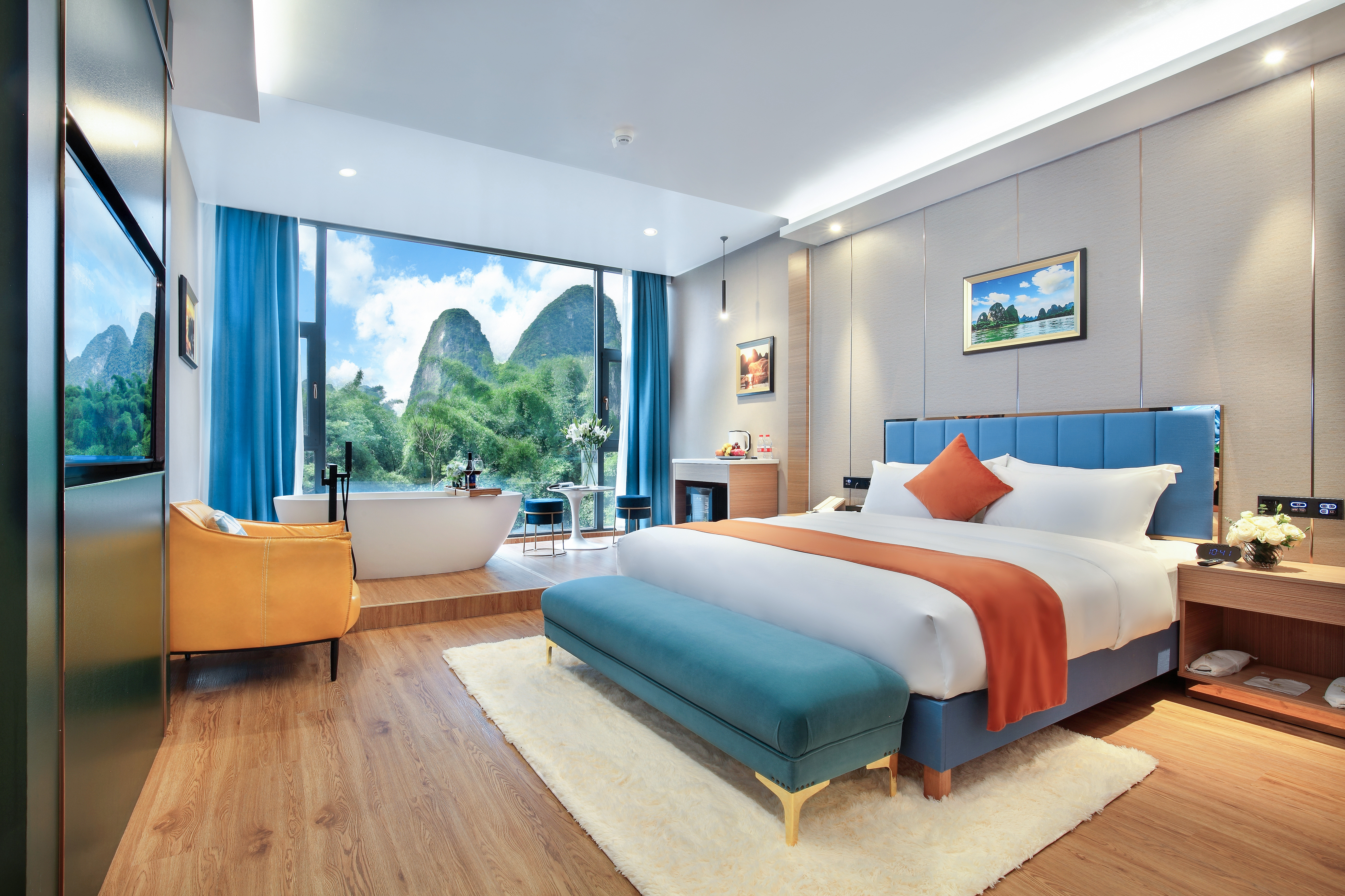 主楼·皎镜浴缸180度观景大床房(懒人沙发+电动窗帘)