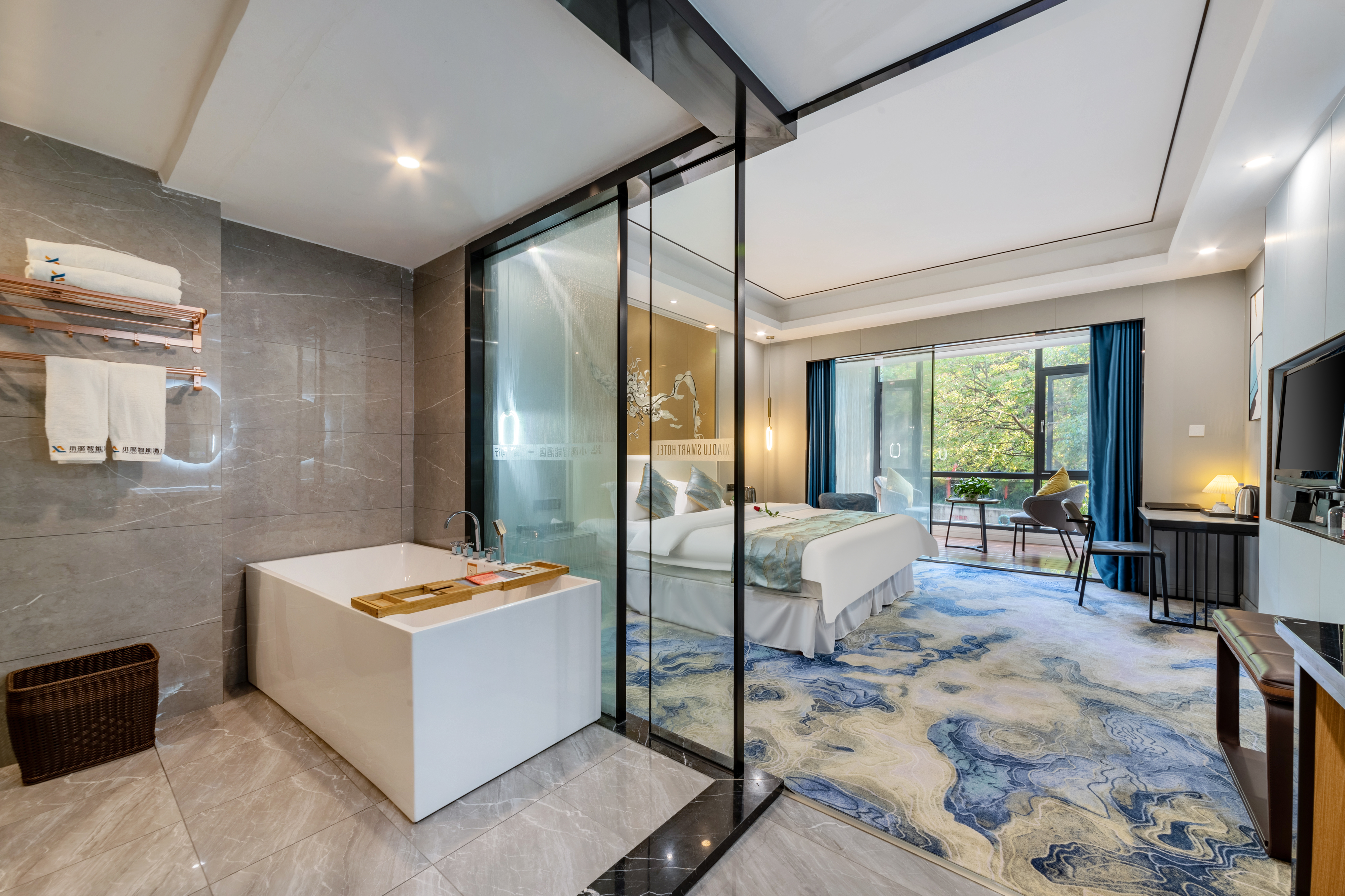 空氣凈化商務園景陽台大床房